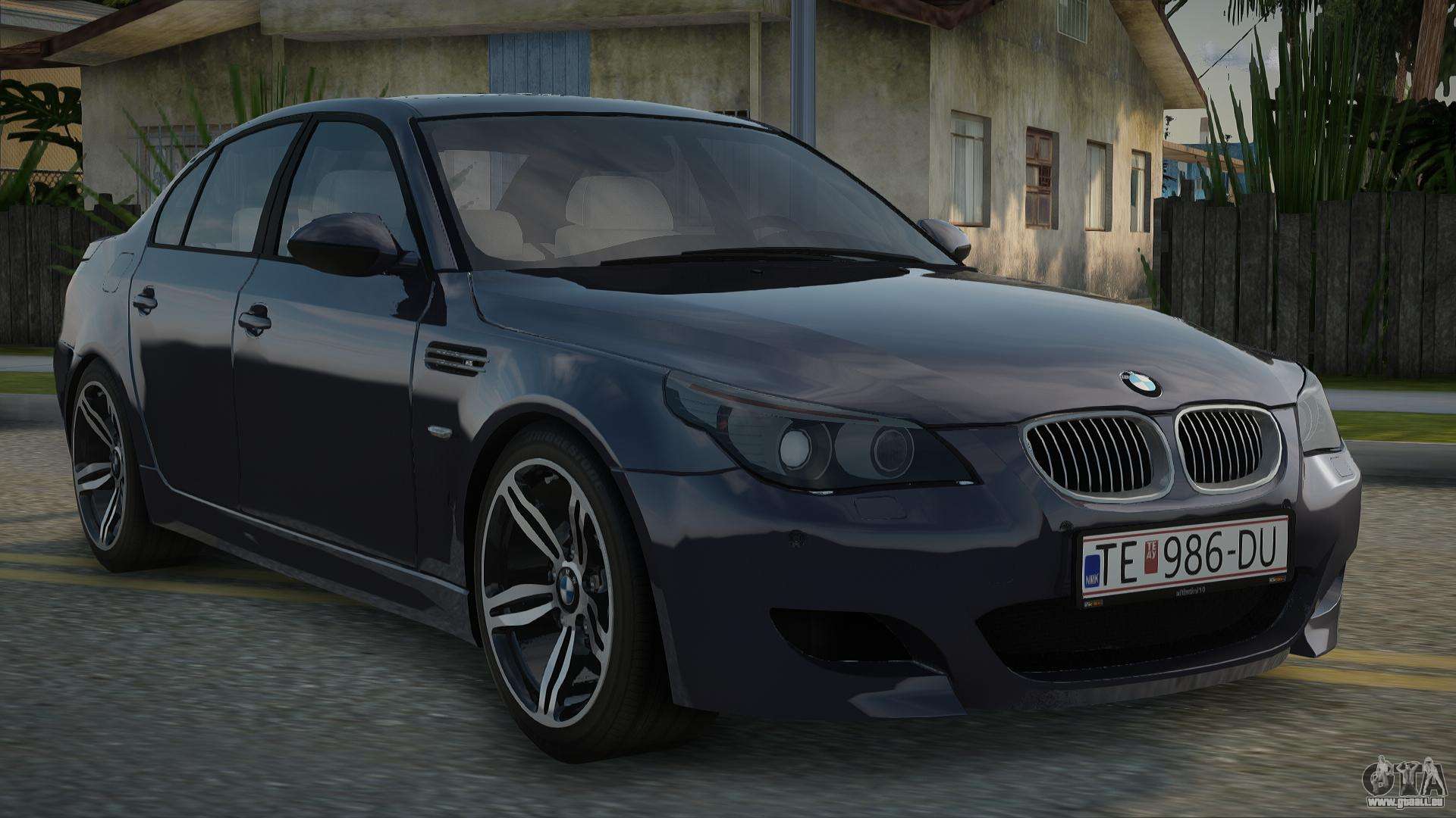 Sie können den BMW M5 E60 V10 (2005-2010) Auto-Mod für GTA San Andreas kostenlos herunterladen, indem Sie auf den untenstehenden Link klicken. Automatische Installation, standardmäßig um Glendale zu ersetzen, oder mit Hilfe des Installateurs kannst du jedes andere Standardauto aus dem Spiel wählen.