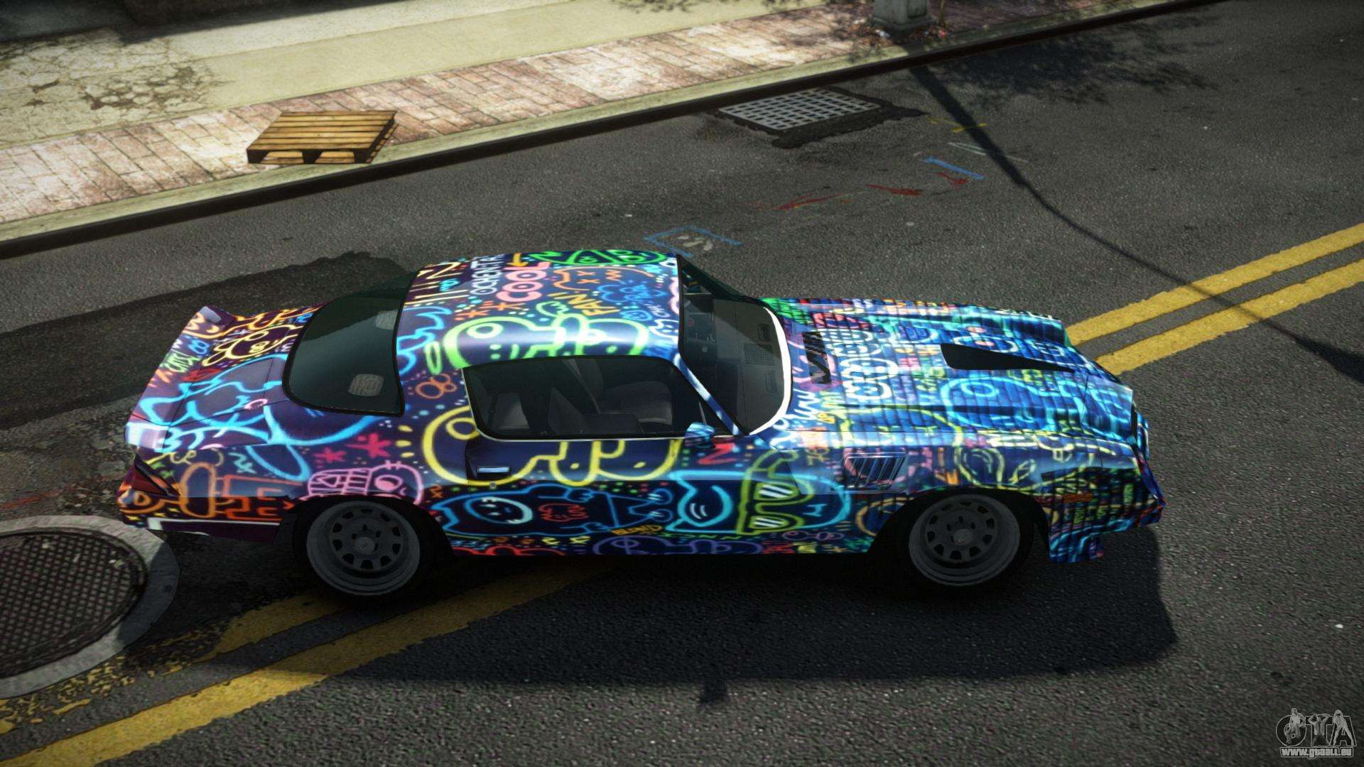 Pour télécharger gratuitement le mod Chevrolet Camaro Z28 Rikaspo S3 pour GTA 4, suivez les liens ci-dessous. L’installateur automatique remplace le Banshee par défaut, mais vous pouvez choisir absolument n’importe quel véhicule standard du jeu que vous souhaitez remplacer par un nouveau modèle.