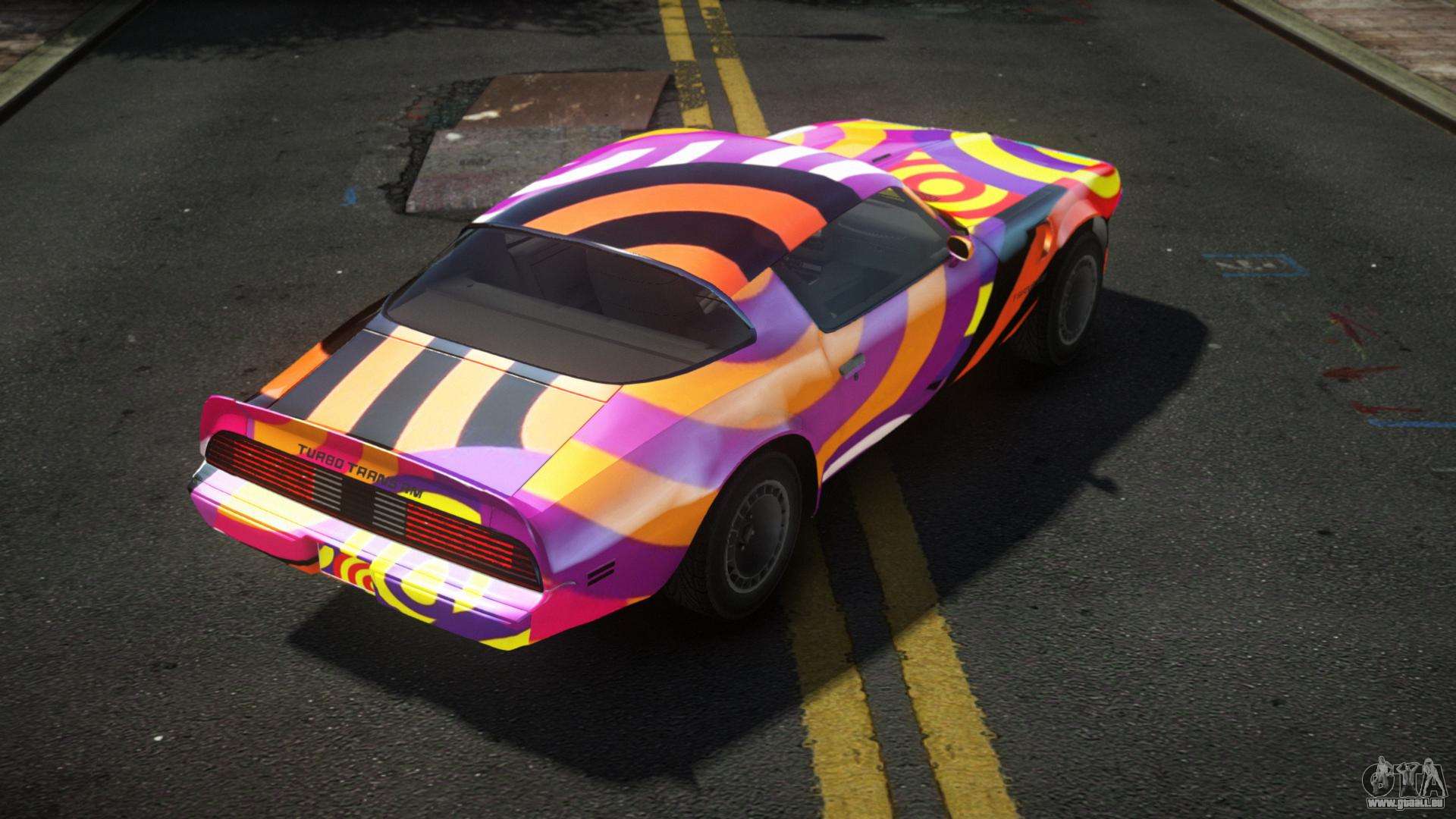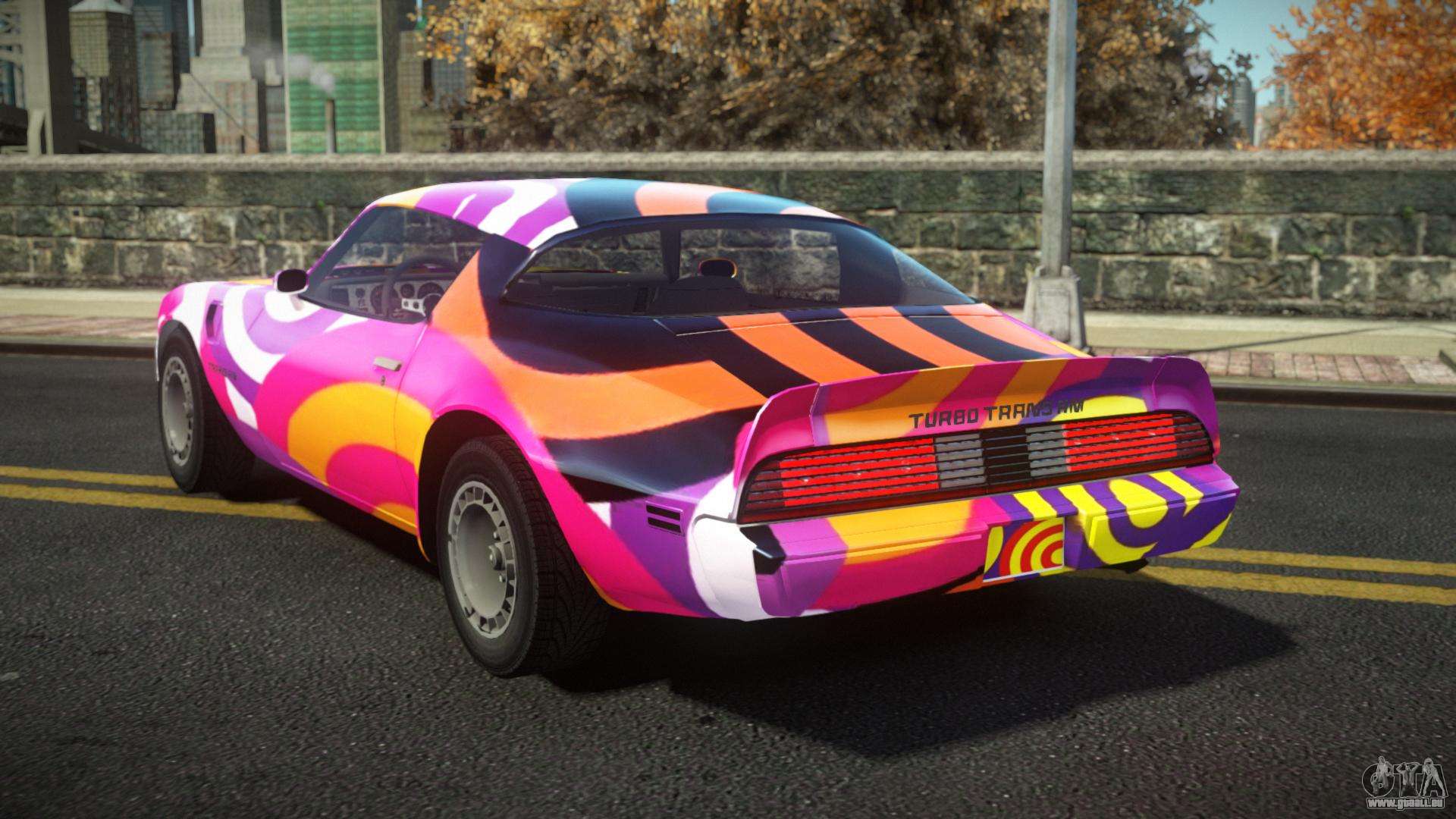 Vous pouvez télécharger gratuitement le mod de voiture Pontiac Trans AM Rugim S1 pour GTA 4 en cliquant sur le lien ci-dessous. Installation automatique, par défaut pour remplacer Feltzer, ou avec l’aide de l’installateur, vous pouvez sélectionner n’importe quelle autre voiture standard du jeu.