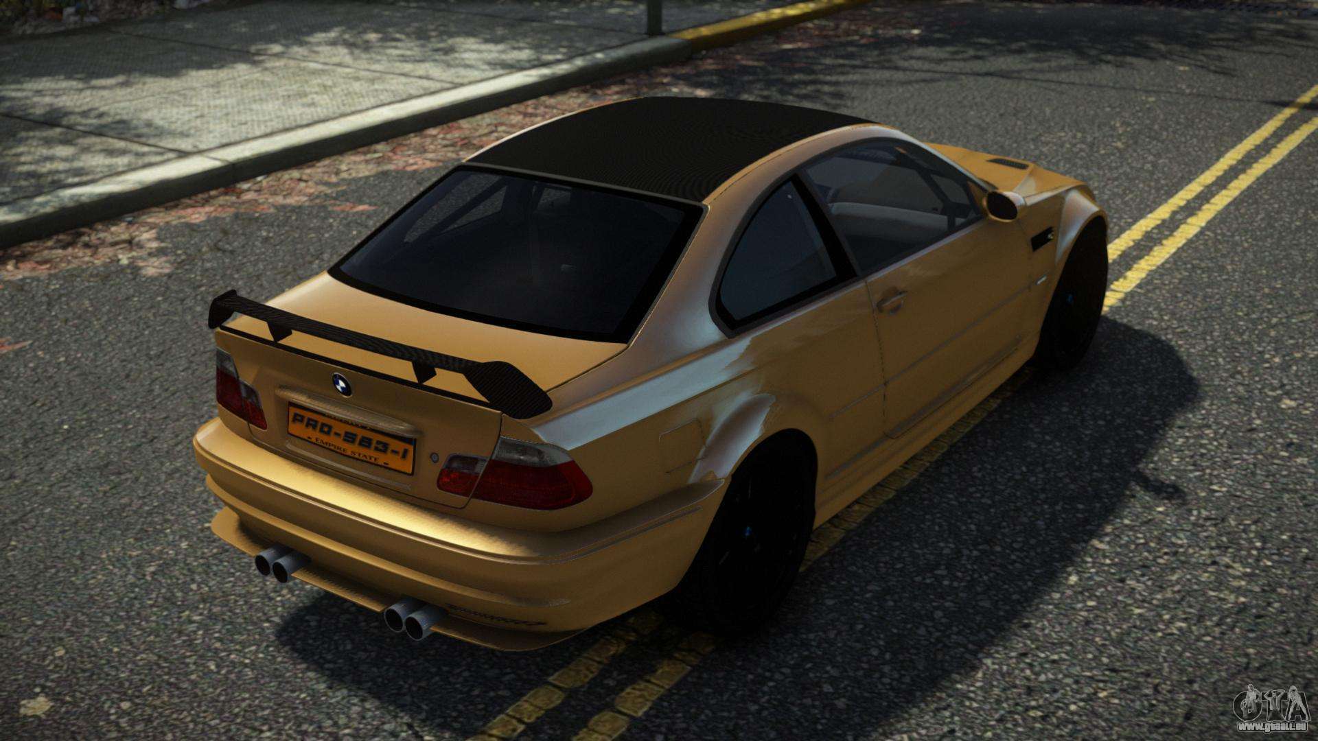 Pour télécharger gratuitement le mod BMW M3 E46 Dyinshi pour GTA 4, suivez les liens ci-dessous. L’installateur automatique remplace le Banshee par défaut, mais vous pouvez choisir absolument n’importe quel véhicule standard du jeu que vous souhaitez remplacer par un nouveau modèle.