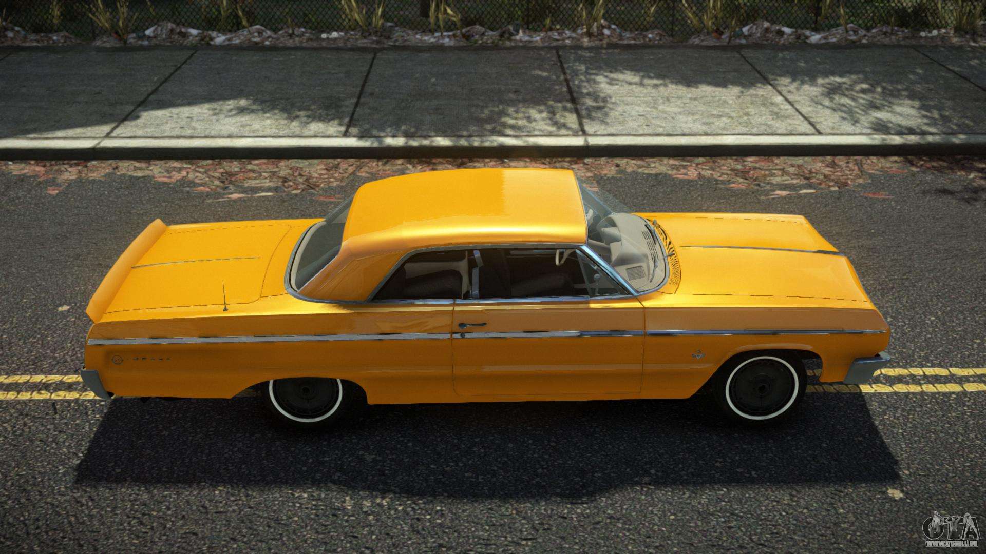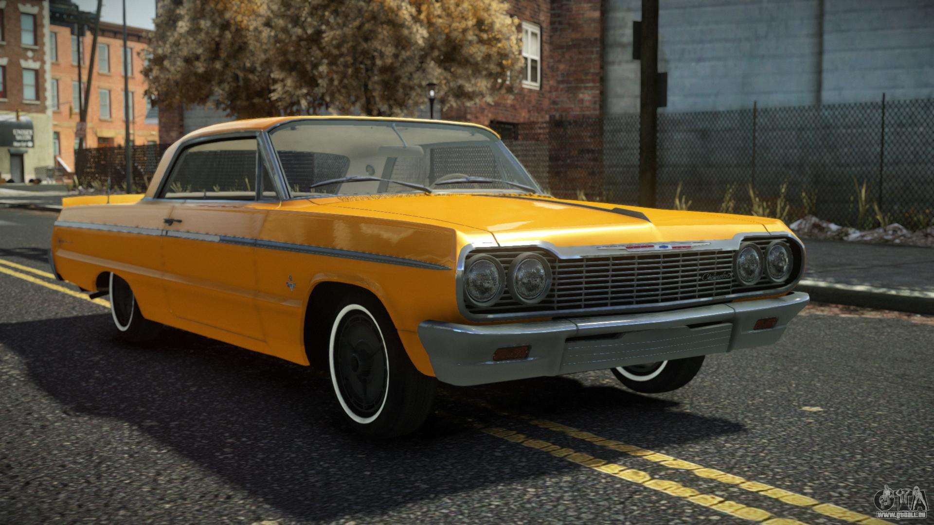 Pour télécharger gratuitement le mod Chevrolet Impala Bulipo pour GTA 4, suivez les liens ci-dessous. L’installateur automatique remplace le Sabre GT par défaut, mais vous pouvez choisir absolument n’importe quel véhicule standard du jeu que vous souhaitez remplacer par un nouveau modèle.