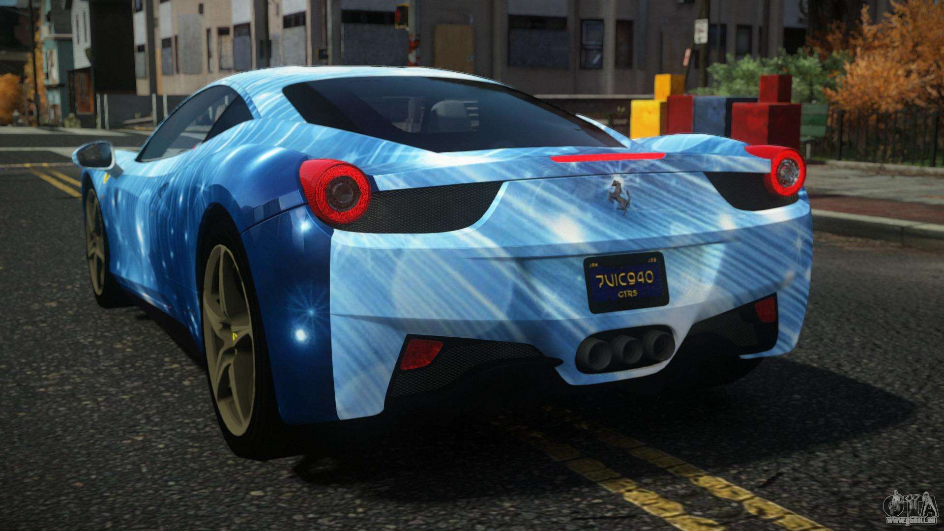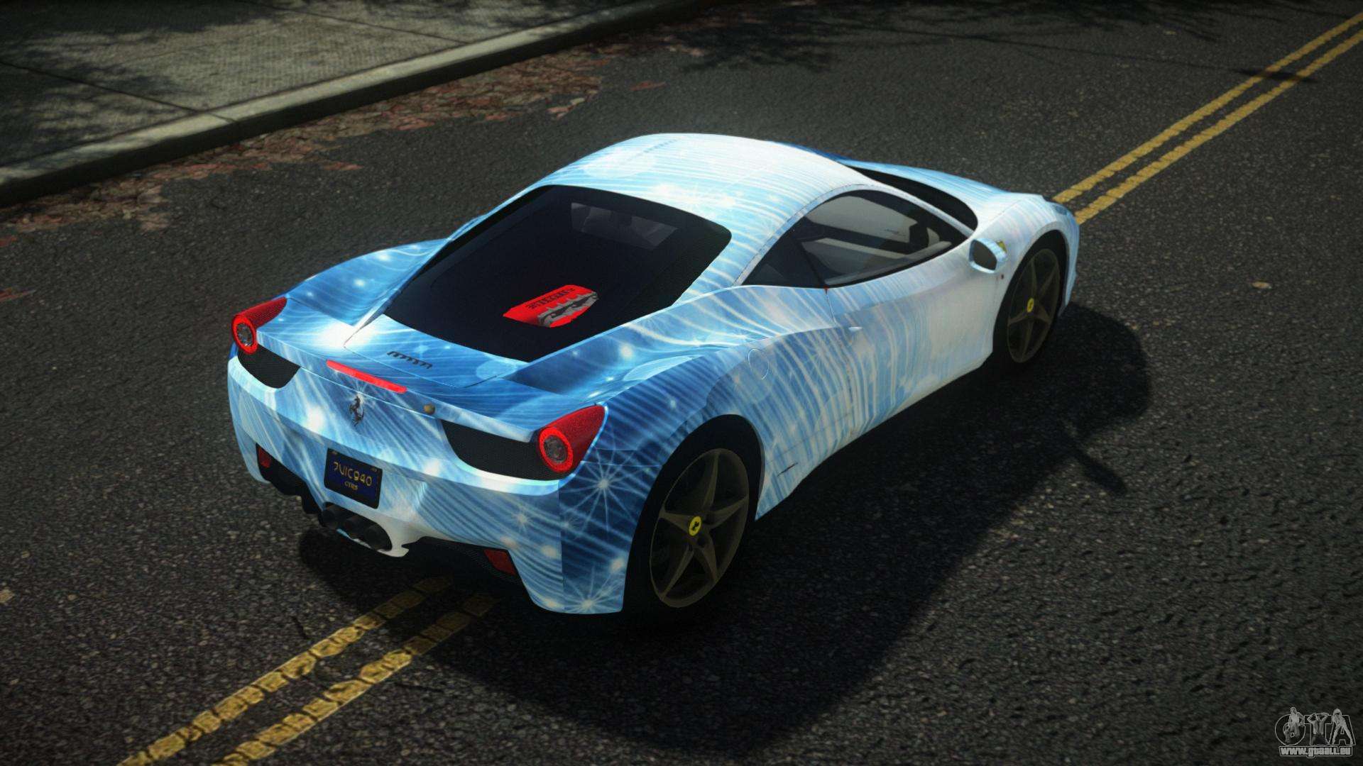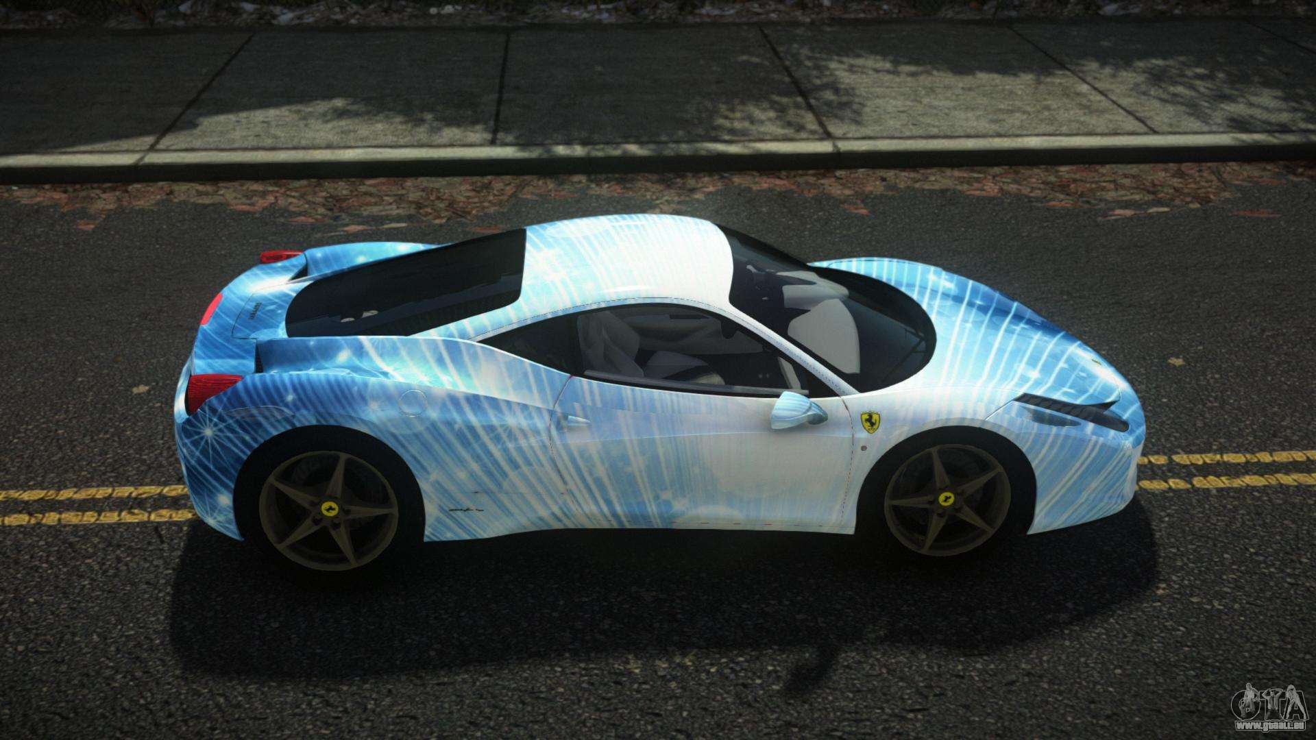 Pour télécharger gratuitement Ferrari 458 Frismo S5 mod pour GTA 4, suivez les liens ci-dessous. L’installateur automatique remplace Feltzer par défaut, mais vous pouvez choisir absolument n’importe quel véhicule standard du jeu que vous souhaitez remplacer par un nouveau modèle.