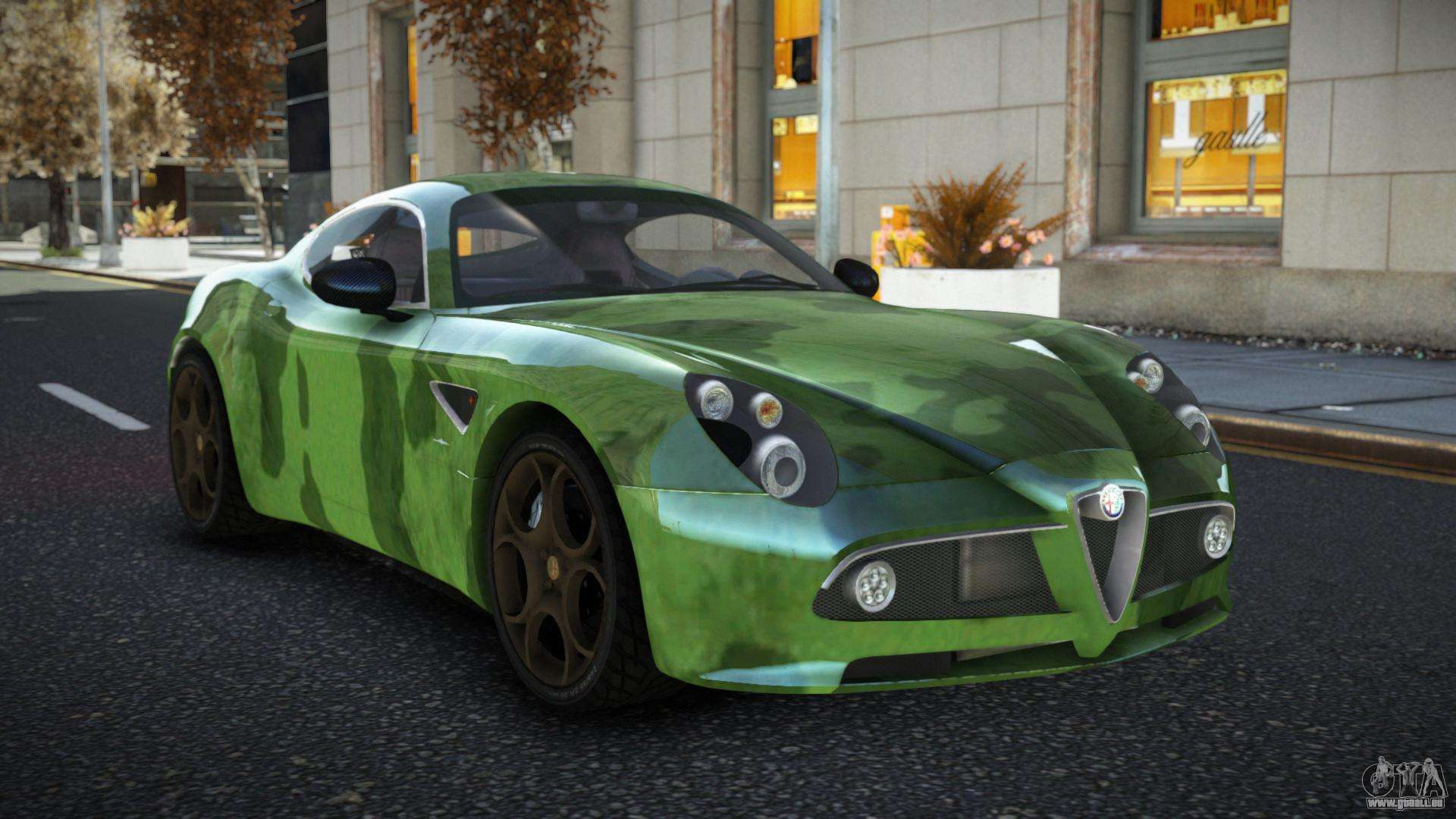 Pour télécharger gratuitement le mod de voiture Alfa Romeo 8C DFL S5 pour GTA 4, il vous suffit de cliquer sur les liens en bas de la page. Notre installateur automatisé vous aidera à installer le mod de remplacement Banshee en deux clics, ou vous pouvez choisir n’importe quel autre véhicule standard dans le jeu.