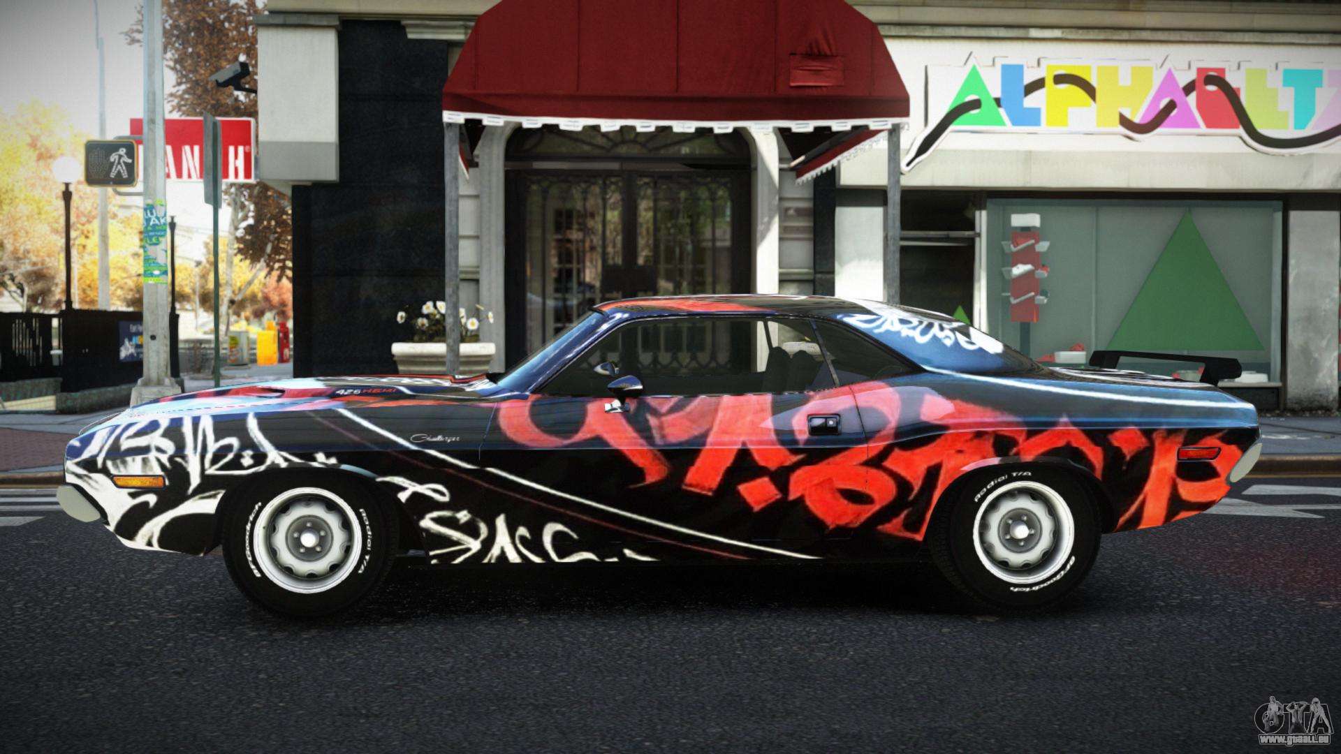 Vous pouvez apprécier tout le charme de la voiture en téléchargeant le mod Dodge Challenger Muzarko S4 pour GTA 4 en cliquant sur les liens ci-dessous. Le mod s’installe automatiquement en deux clics, par défaut il remplace Feltzer, ou choisissez tout autre véhicule du jeu que vous souhaitez transformer.