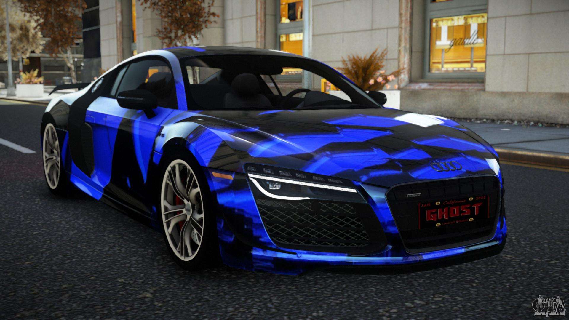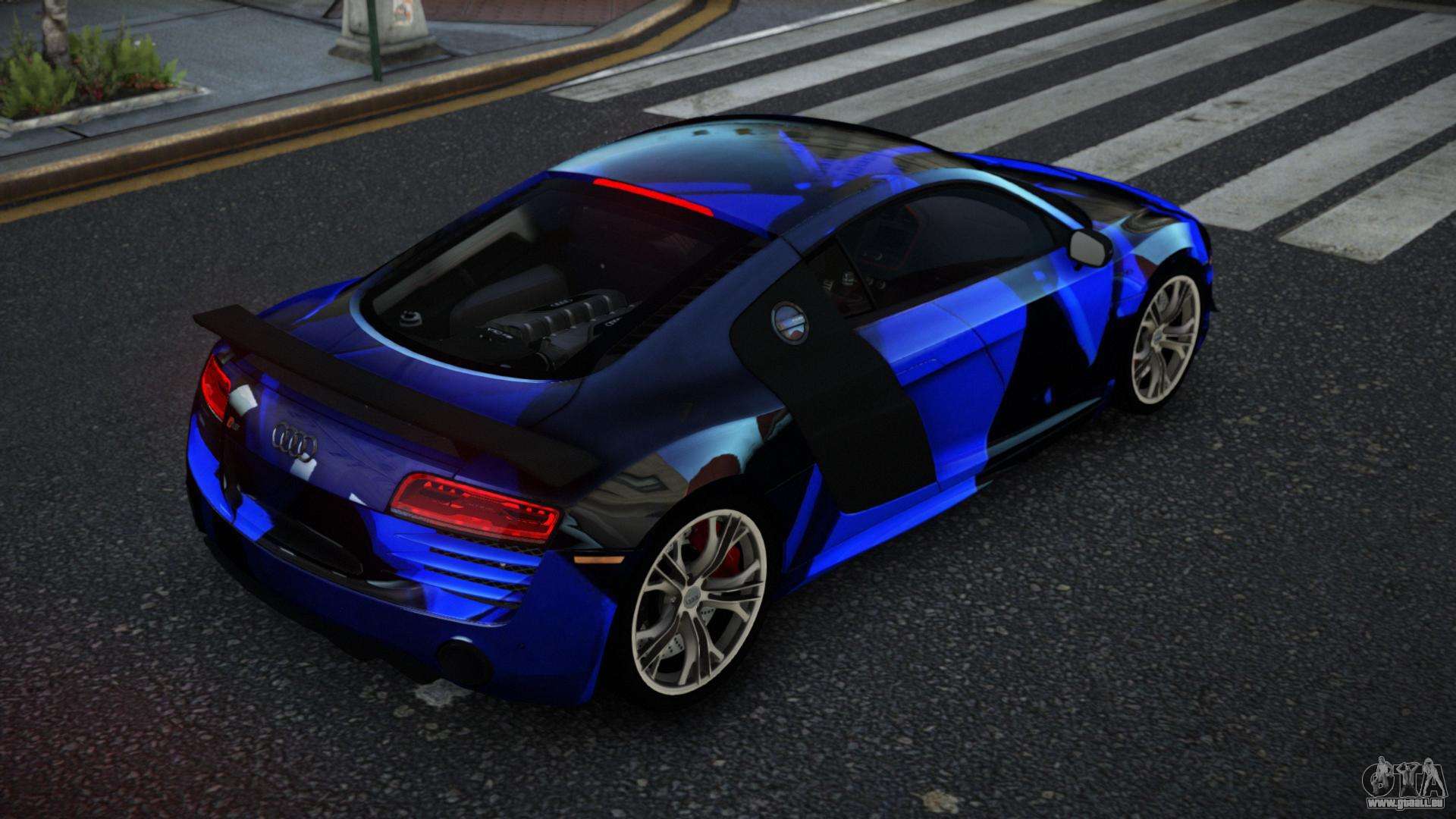 Vous pouvez télécharger gratuitement le mod de voiture Audi R8 Sollyen S13 pour GTA 4 en cliquant sur le lien ci-dessous. Installation automatique, par défaut pour remplacer la Banshee, ou avec l’aide de l’installateur, vous pouvez choisir n’importe quelle autre voiture standard du jeu.
