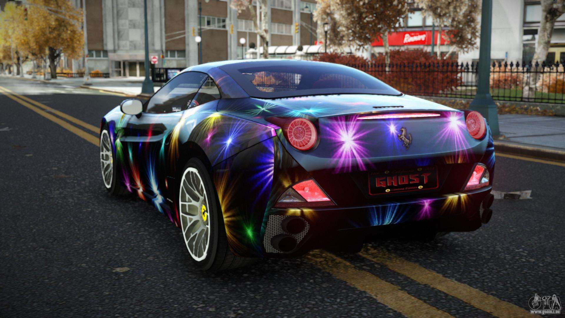 Pour télécharger gratuitement le mod de voiture Ferrari California Eljenler S7 pour GTA 4, il vous suffit de cliquer sur les liens en bas de la page. Notre installateur automatisé vous aidera à installer le mod de remplacement Feltzer en deux clics, ou vous pouvez choisir n’importe quel autre véhicule standard dans le jeu.