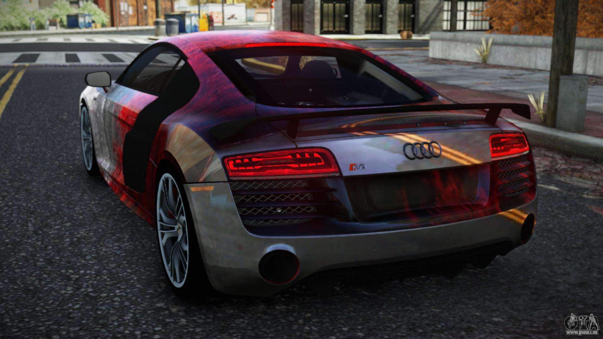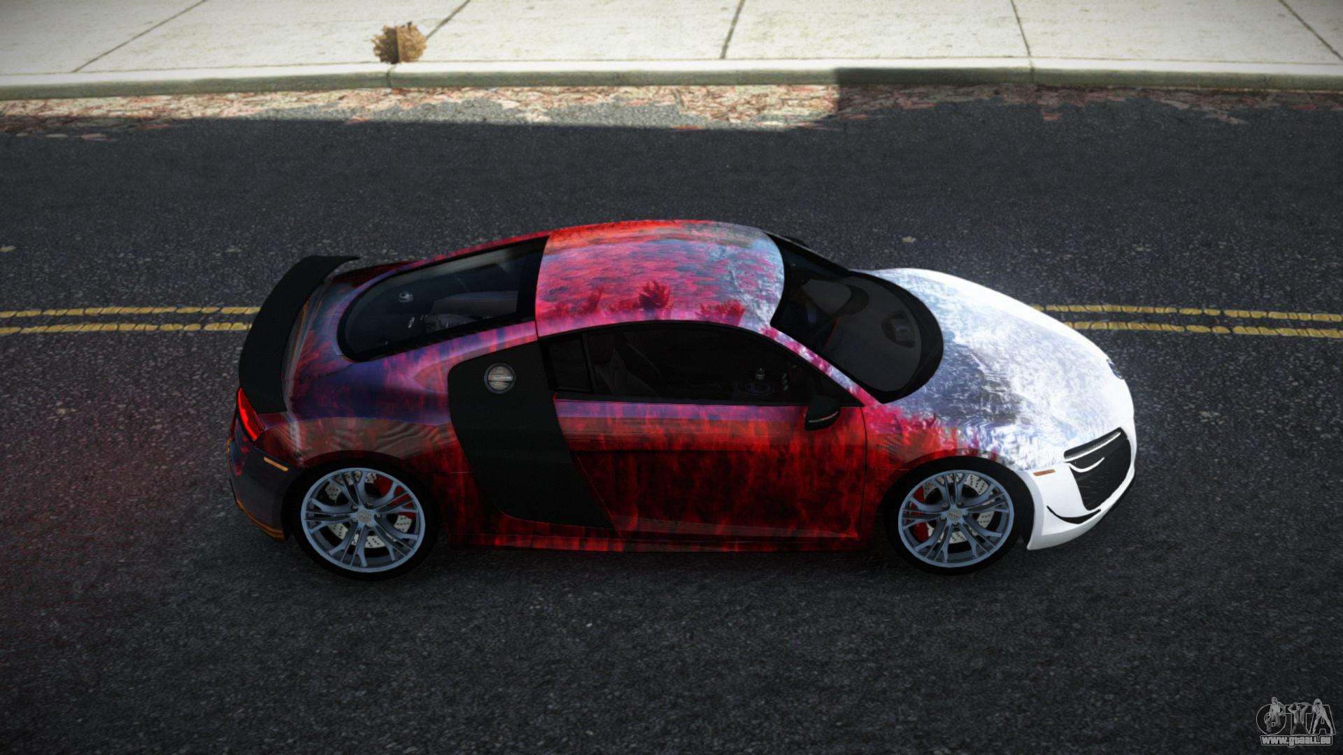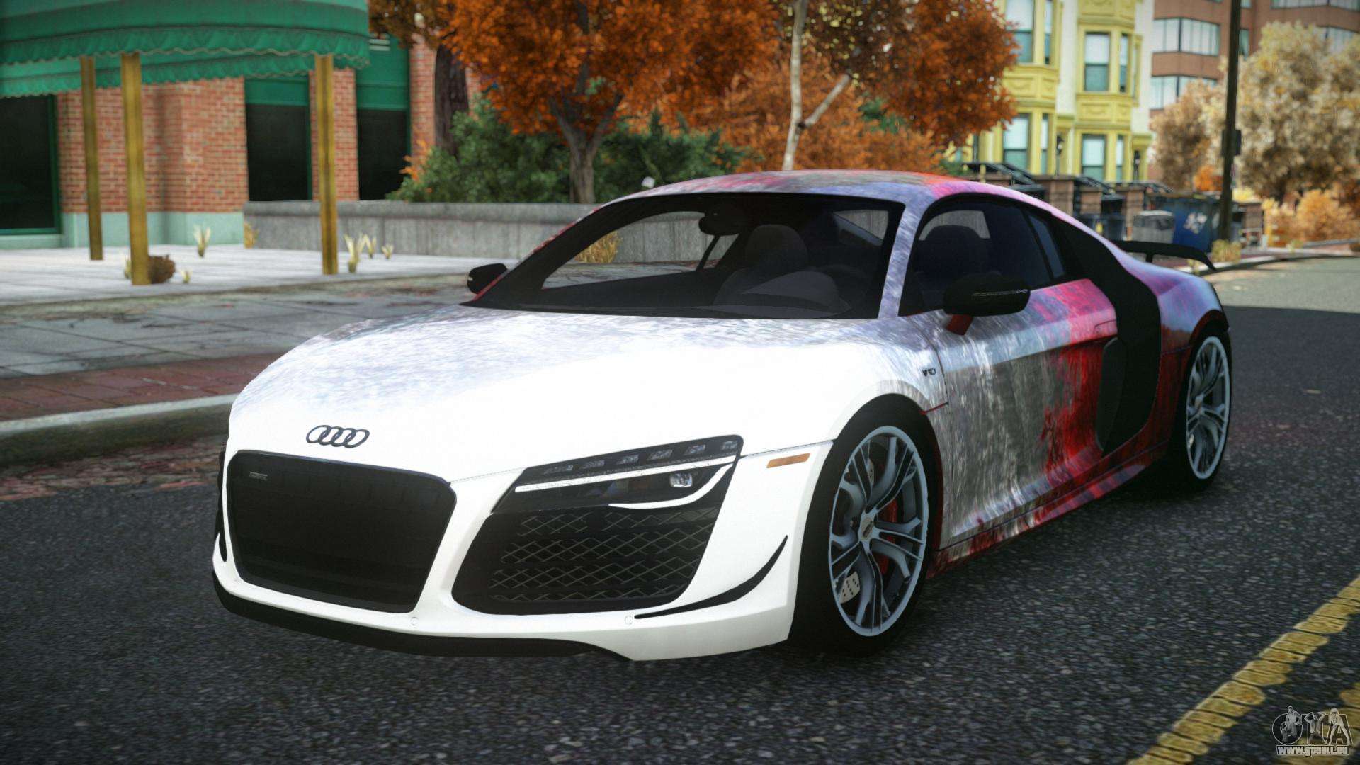 Vous pouvez apprécier tout le charme de la voiture en téléchargeant le mod Audi R8 Saria S2 pour GTA 4 en cliquant sur les liens ci-dessous. Le mod s’installe automatiquement en deux clics, par défaut il remplace le Banshee, ou choisissez tout autre véhicule du jeu que vous souhaitez transformer.