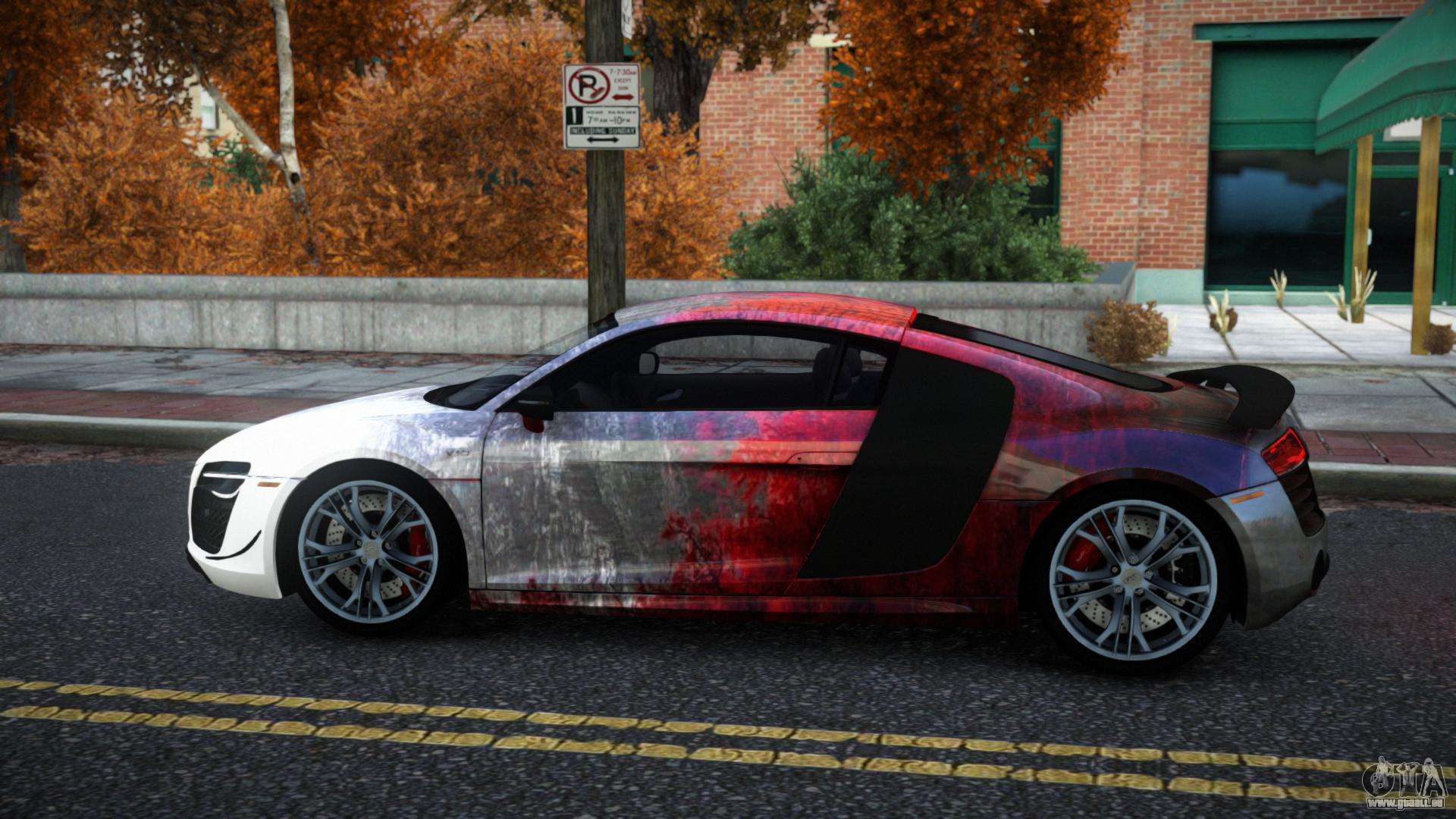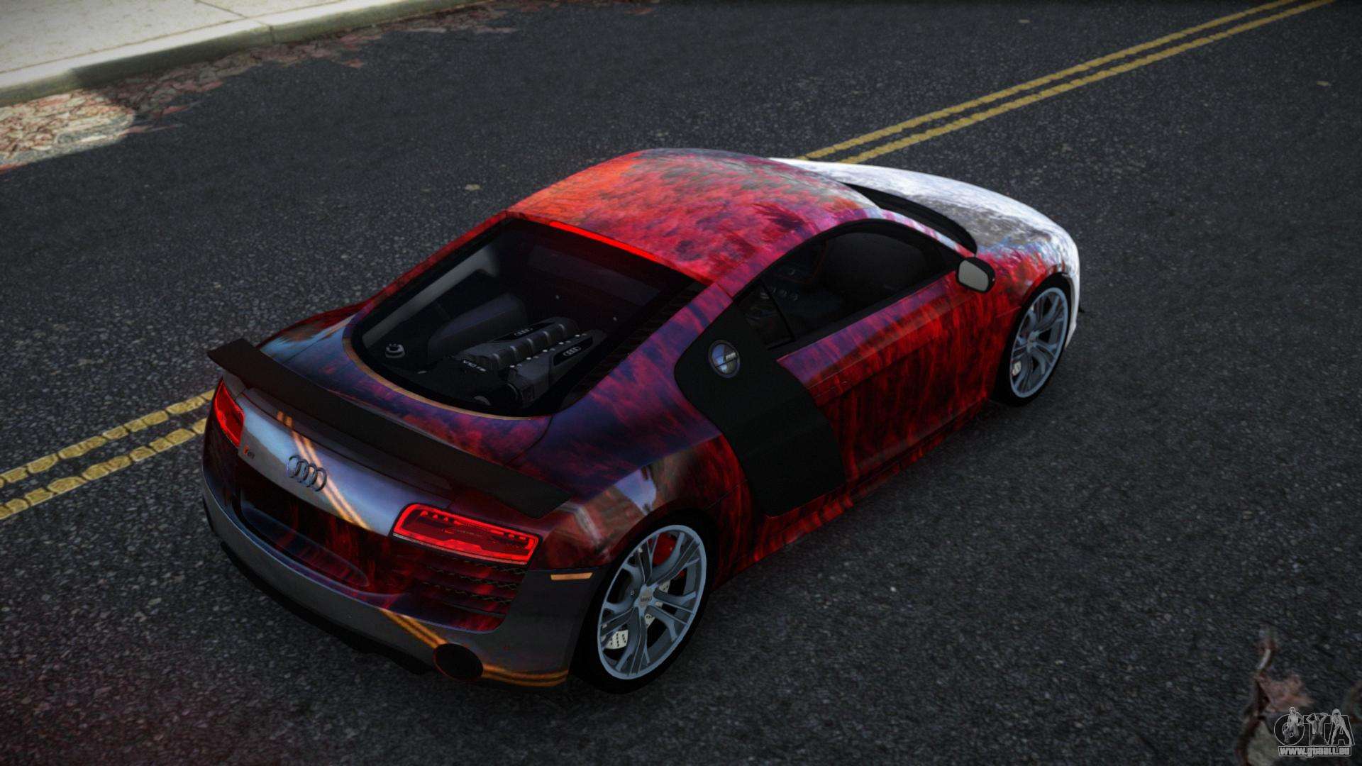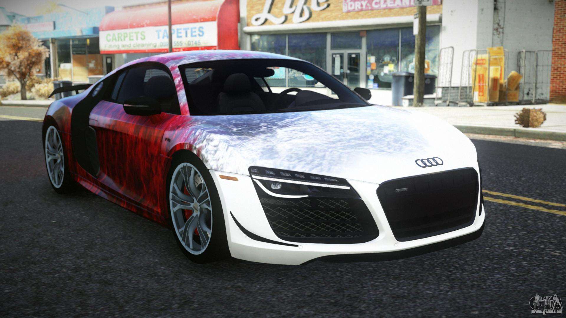 Vous pouvez apprécier tout le charme de la voiture en téléchargeant le mod Audi R8 Saria S2 pour GTA 4 en cliquant sur les liens ci-dessous. Le mod s’installe automatiquement en deux clics, par défaut il remplace le Banshee, ou choisissez tout autre véhicule du jeu que vous souhaitez transformer.