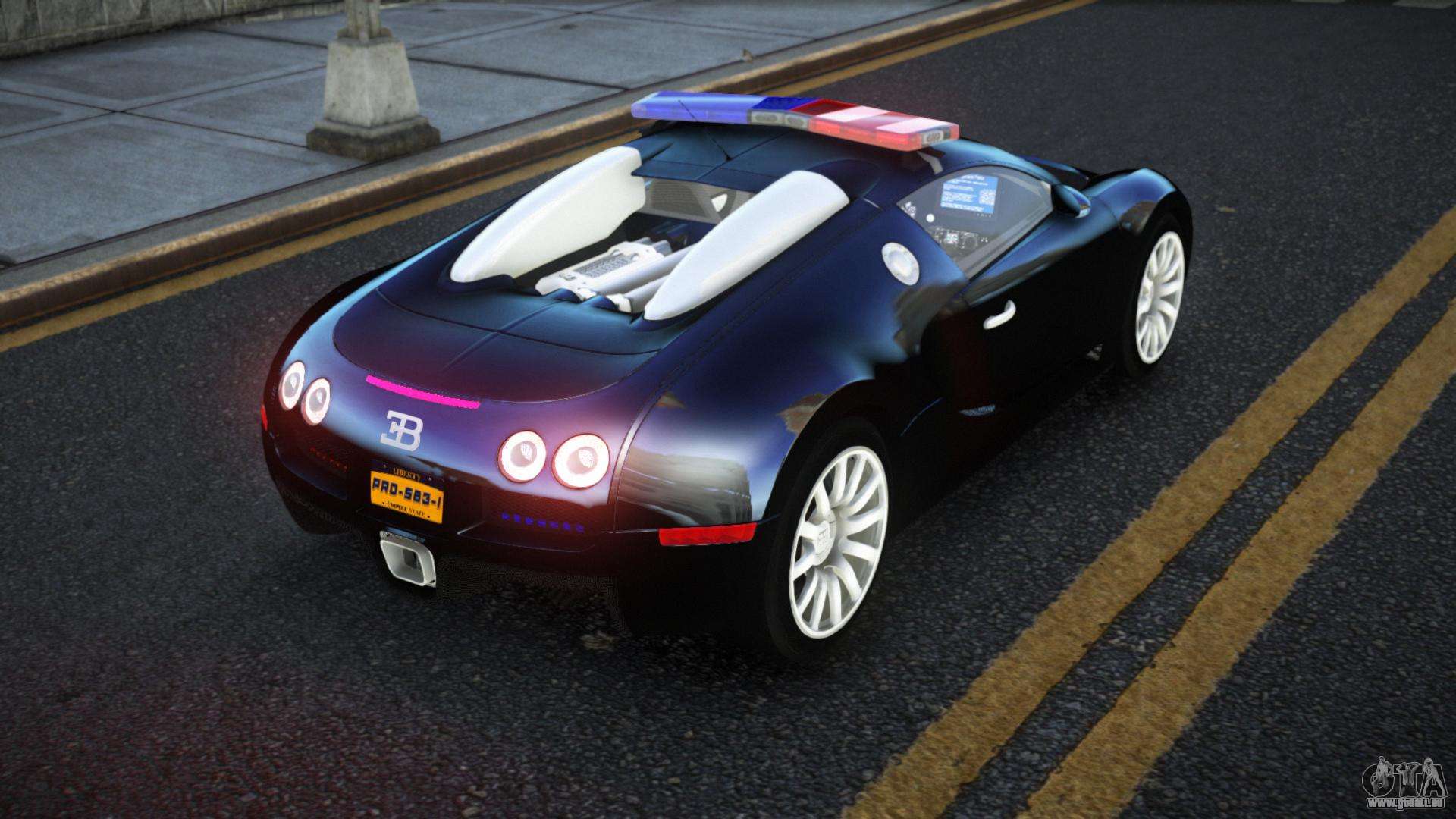 Pour télécharger gratuitement le mod de voiture Bugatti Veyron Gejo pour GTA 4, il vous suffit de cliquer sur les liens en bas de la page. Notre installateur automatisé vous aidera à installer le mod de remplacement Police Cruiser en deux clics, ou vous pouvez choisir n’importe quel autre véhicule standard dans le jeu.