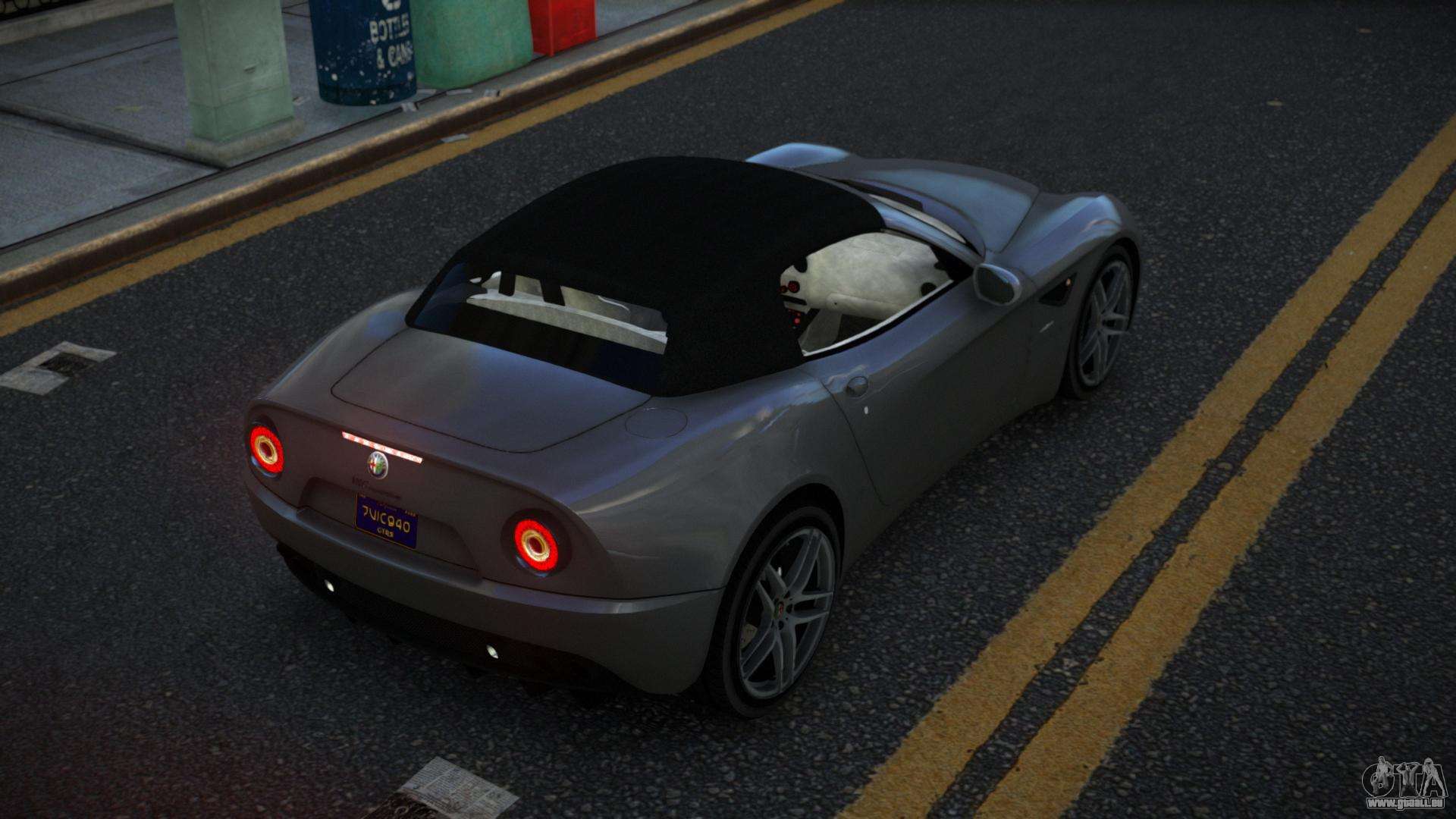 Le mod Alfa Romeo 8C Lomejeyug pour GTA 4 peut être téléchargé ci-dessous sur les liens. La modification est automatiquement installée par défaut pour remplacer Sultan RS, et avec l’aide de notre installateur, vous pouvez la remplacer par n’importe quel véhicule de jeu standard.