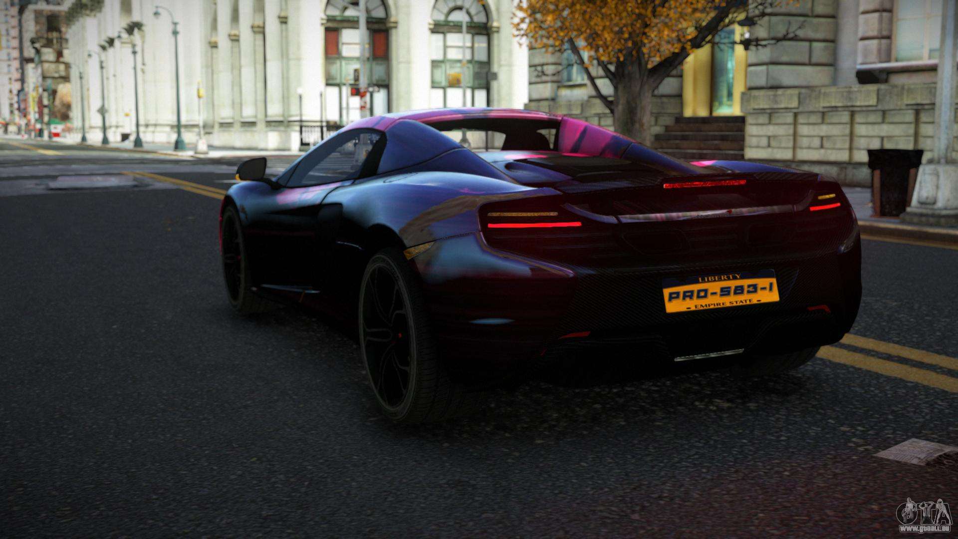 Vous pouvez apprécier tout le charme de la voiture en téléchargeant le mod McLaren 650S Desomien S12 pour GTA 4 en cliquant sur les liens ci-dessous. Le mod s’installe automatiquement en deux clics, par défaut il remplace le Banshee, ou choisissez tout autre véhicule du jeu que vous souhaitez transformer.