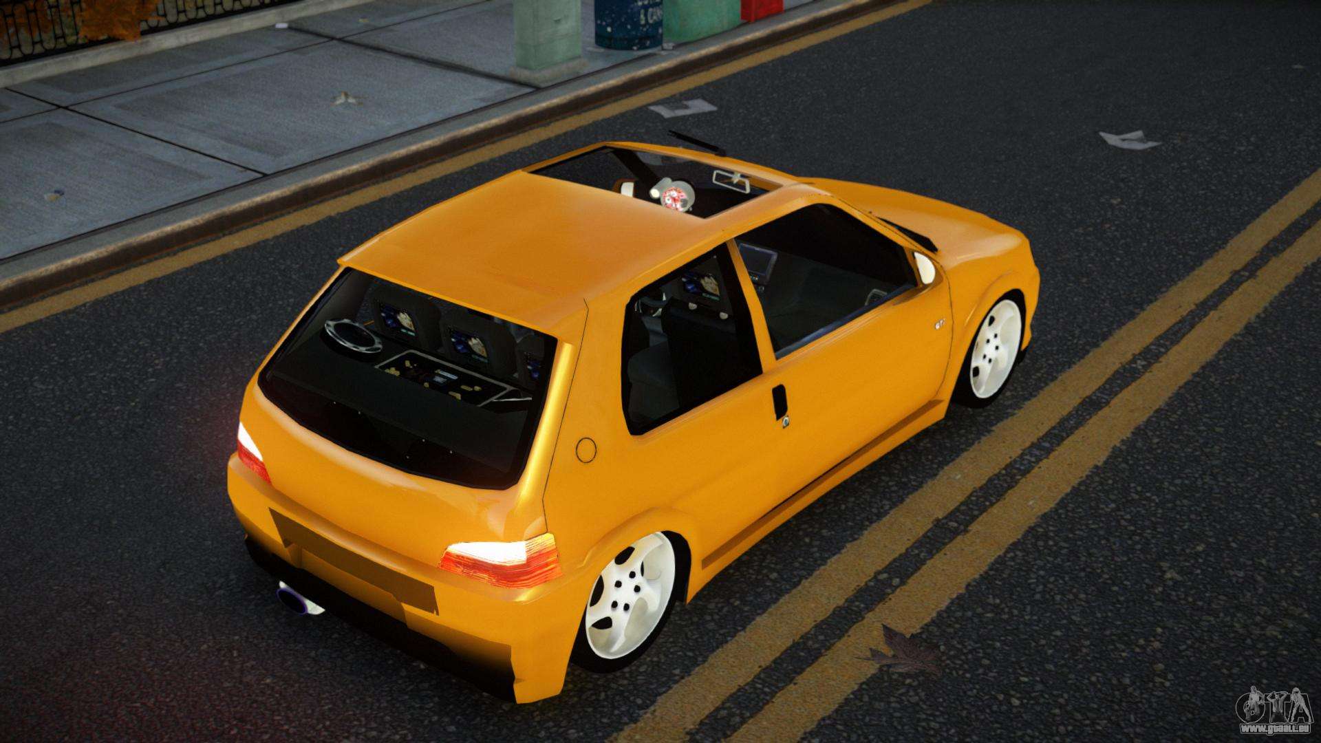 Vous pouvez télécharger gratuitement le mod de voiture Peugeot 106 Huisu pour GTA 4 en cliquant sur le lien ci-dessous. Installation automatique, par défaut pour remplacer Futo, ou avec l’aide de l’installateur, vous pouvez choisir n’importe quelle autre voiture standard du jeu.