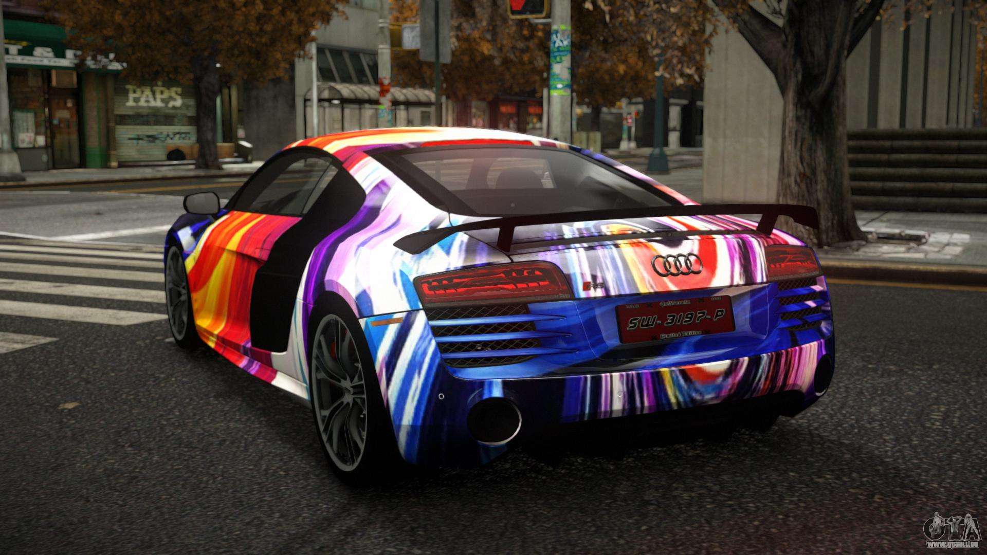 Pour télécharger gratuitement le mod Audi R8 Roander S11 pour GTA 4, suivez les liens ci-dessous. L’installateur automatique remplace le Banshee par défaut, mais vous pouvez choisir absolument n’importe quel véhicule standard du jeu que vous souhaitez remplacer par un nouveau modèle.