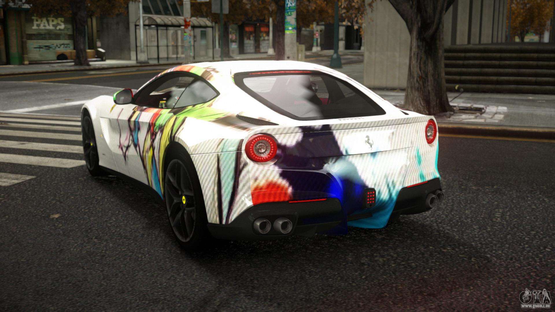 Nous présentons à votre attention le mod pour la voiture Ferrari F12 Chloram S4 pour GTA 4, qui vous permet de diversifier le trafic urbain dans les rues de Liberty City.