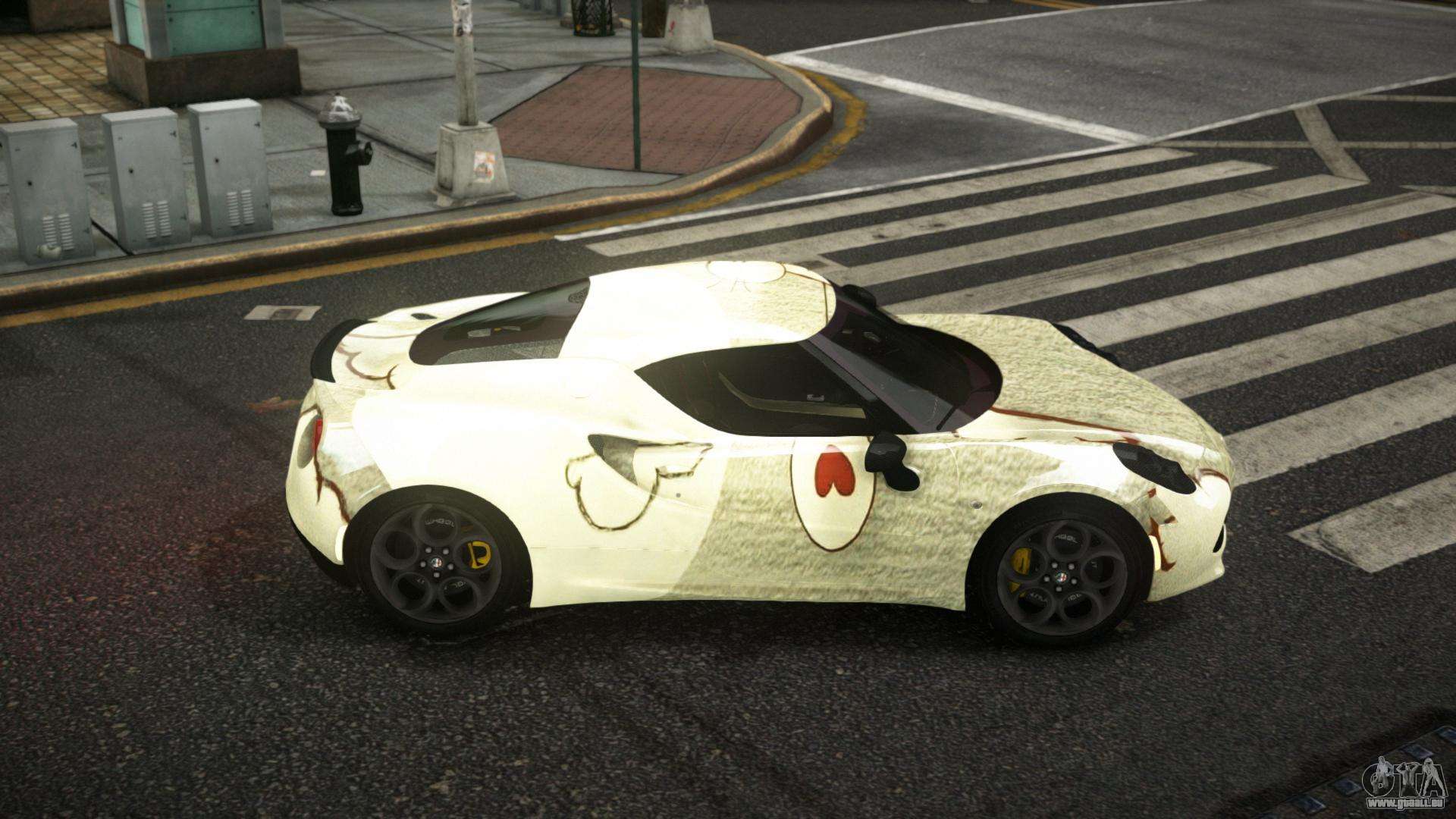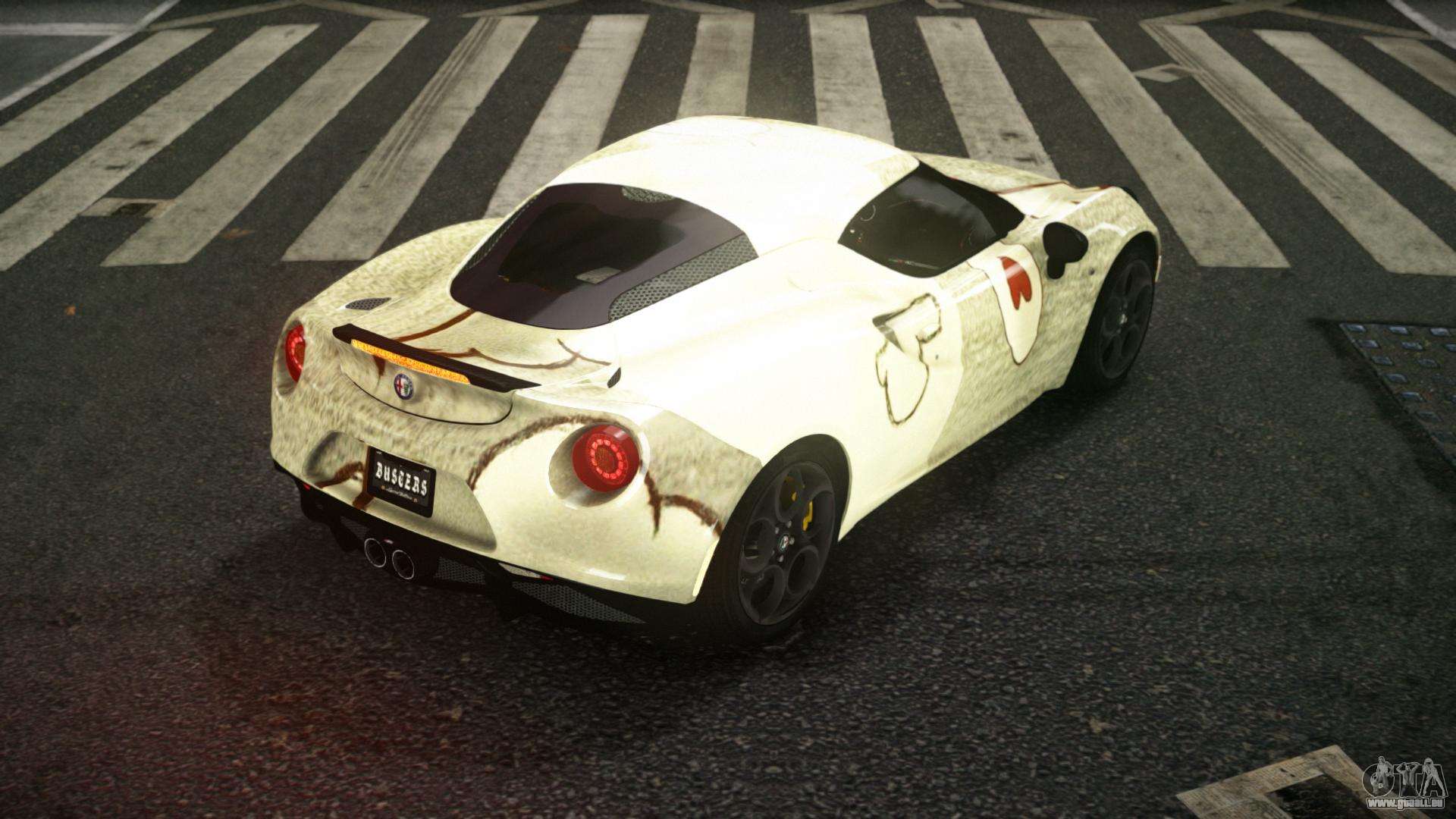 Pour télécharger gratuitement le mod de voiture Alfa Romeo 4C Rilornic S9 pour GTA 4, il vous suffit de cliquer sur les liens en bas de la page. Notre installateur automatisé vous aidera à installer le mod de remplacement Banshee en deux clics, ou vous pouvez choisir n’importe quel autre véhicule standard dans le jeu.