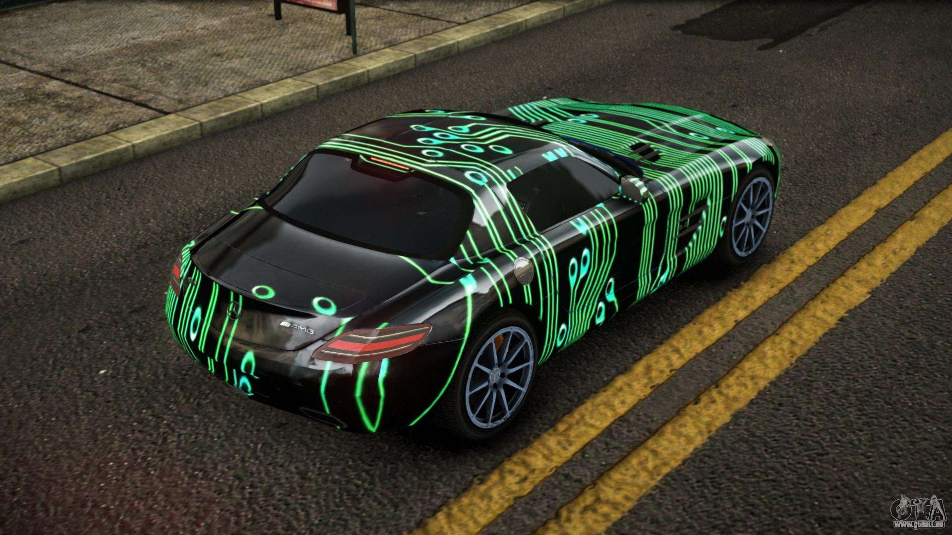 Ne vous privez pas de ce plaisir, suivez les liens ci-dessous et téléchargez le mod Mercedes-Benz SLS Lanlie S5 pour GTA 4. L’installation automatique en deux clics, par défaut, remplacera le feutre. Et aussi, grâce à notre installateur, vous pouvez choisir quelle voiture de jeu standard vous souhaitez améliorer.
