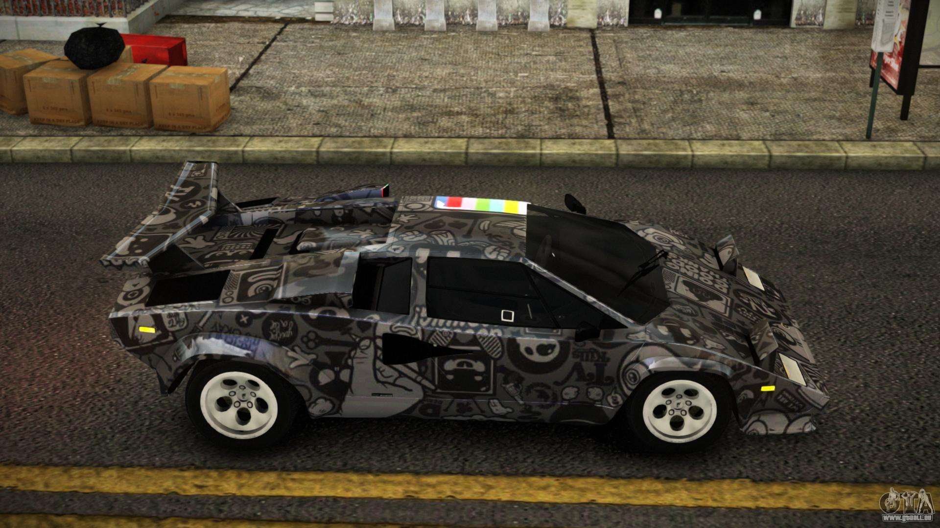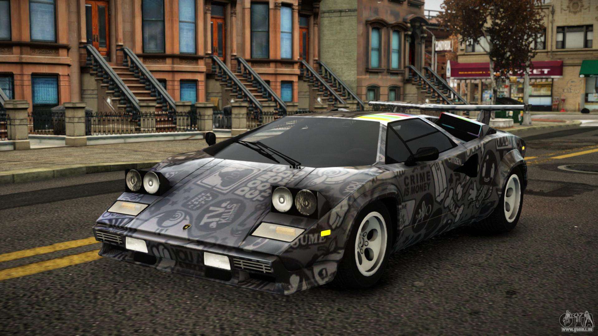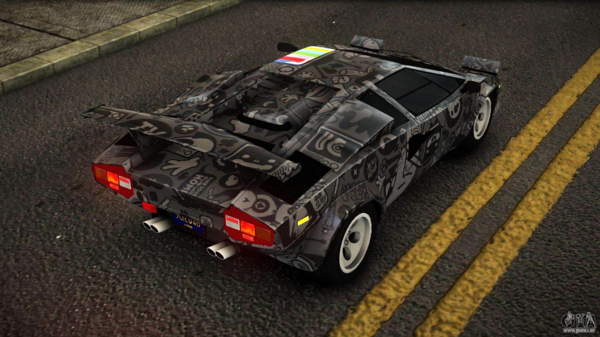 Pour télécharger gratuitement le mod Lamborghini Countach Brier S9 pour GTA 4, il vous suffit de cliquer sur les liens en bas de la page. Notre installateur automatisé vous aidera à installer le mod de remplacement de Banshee en deux clics, ou vous pouvez choisir n’importe quel autre véhicule standard dans le jeu.