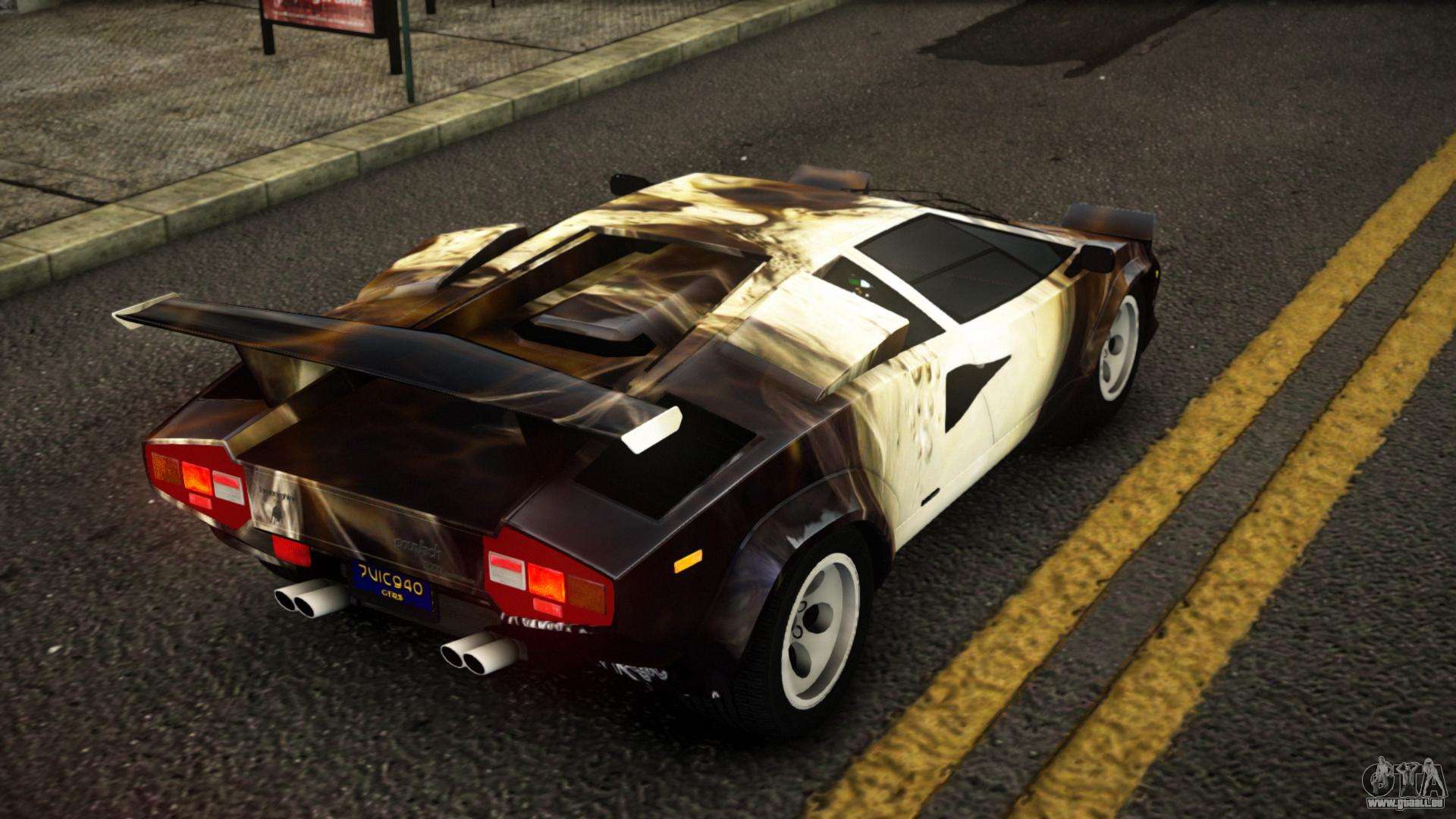 Vous pouvez apprécier tout le charme de la voiture en téléchargeant le mod Lamborghini Countach Brier S12 pour GTA 4 en cliquant sur les liens ci-dessous. Le mod s’installe automatiquement en deux clics, par défaut il remplace la Banshee, ou choisit n’importe quel autre véhicule du jeu que vous souhaitez transformer.