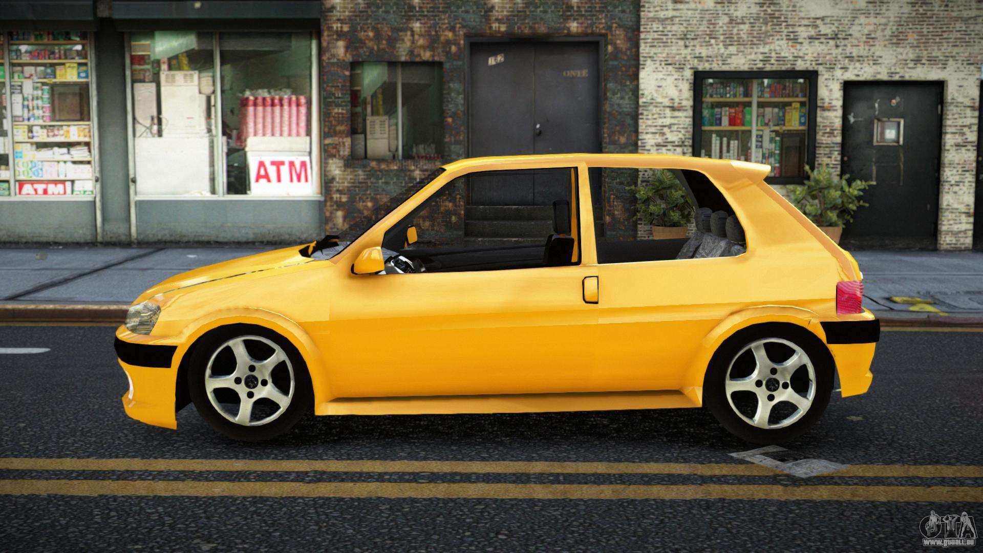 Vous pouvez télécharger le mod Peugeot 106 Segpuhura pour GTA 4 via les liens ci-dessous. Par défaut, le mod est installé en deux clics pour remplacer Super GT. Grâce à notre installateur avec installation automatique, vous pouvez remplacer n’importe quel autre véhicule standard dans le jeu.