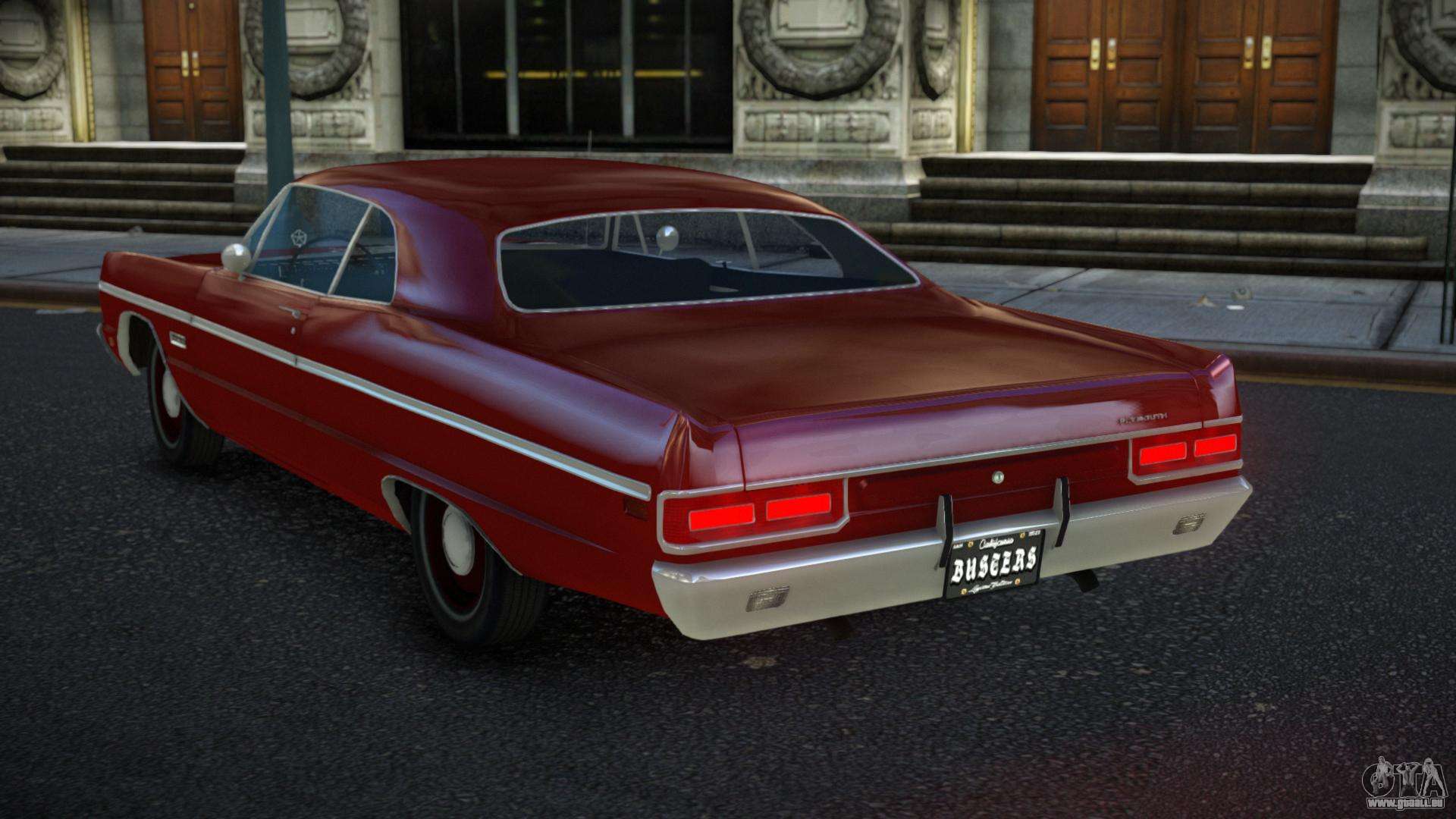 Pour télécharger gratuitement le mod Plymouth Fury Mumo pour GTA 4, suivez les liens ci-dessous. L’installateur automatique remplace le Buccaneer par défaut, mais vous pouvez choisir absolument n’importe quel véhicule standard du jeu que vous souhaitez remplacer par un nouveau modèle.