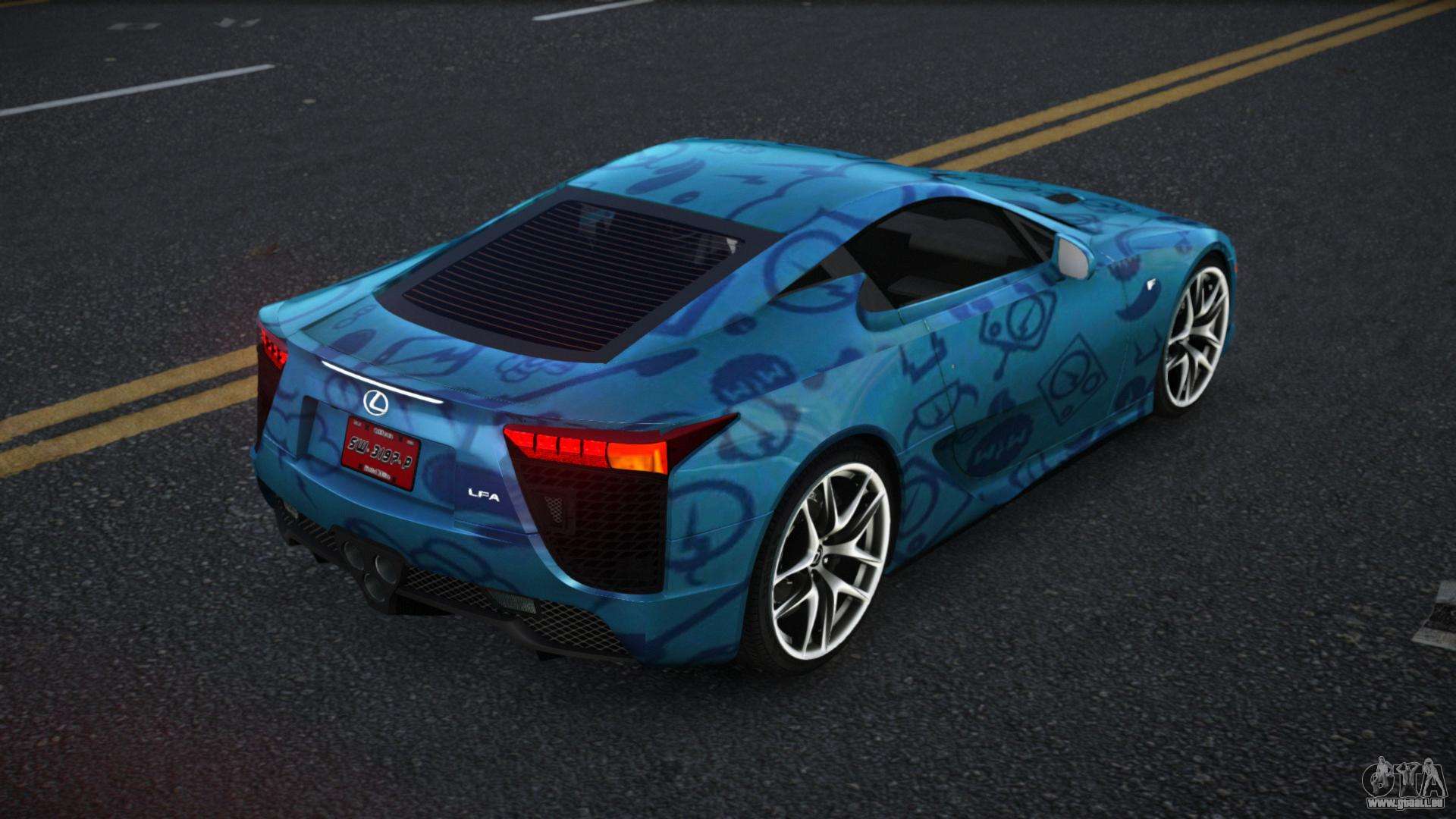 Pour télécharger gratuitement le mod Lexus LFA Jenah S1 pour GTA 4, suivez les liens ci-dessous. L’installateur automatique remplace la Banshee par défaut, mais vous pouvez choisir absolument n’importe quel véhicule standard du jeu que vous souhaitez remplacer par un nouveau modèle.