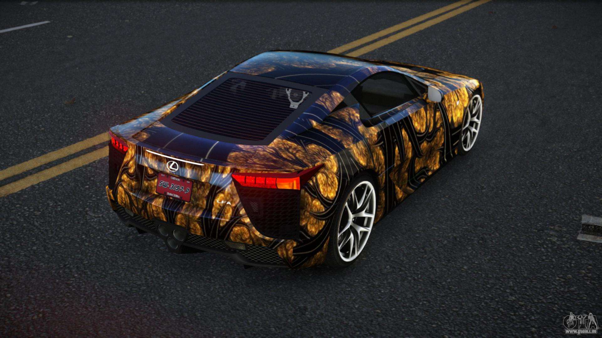 Pour télécharger gratuitement le mod Lexus LFA Jenah S9 pour GTA 4, il vous suffit de cliquer sur les liens en bas de la page. Notre installateur automatisé vous aidera à installer le mod de remplacement de Banshee en deux clics, ou vous pouvez choisir n’importe quel autre véhicule standard dans le jeu.