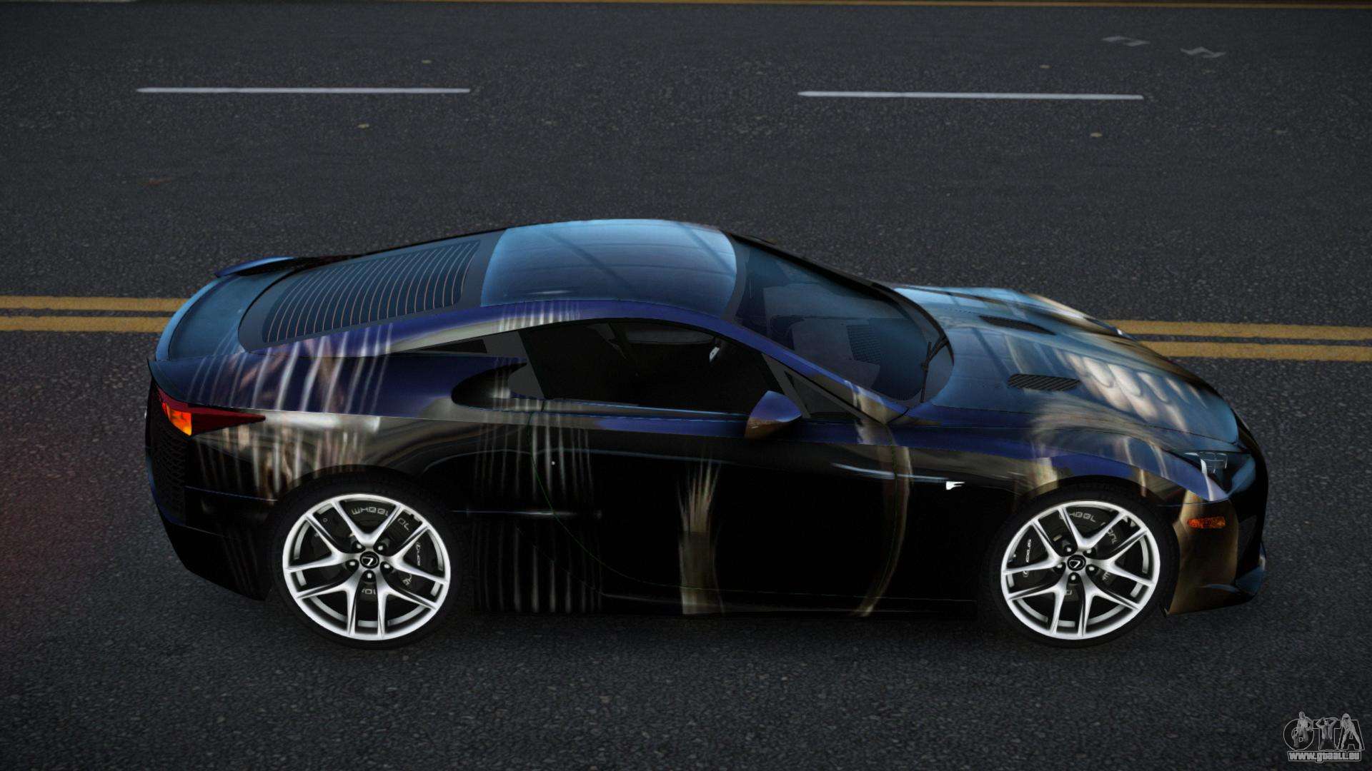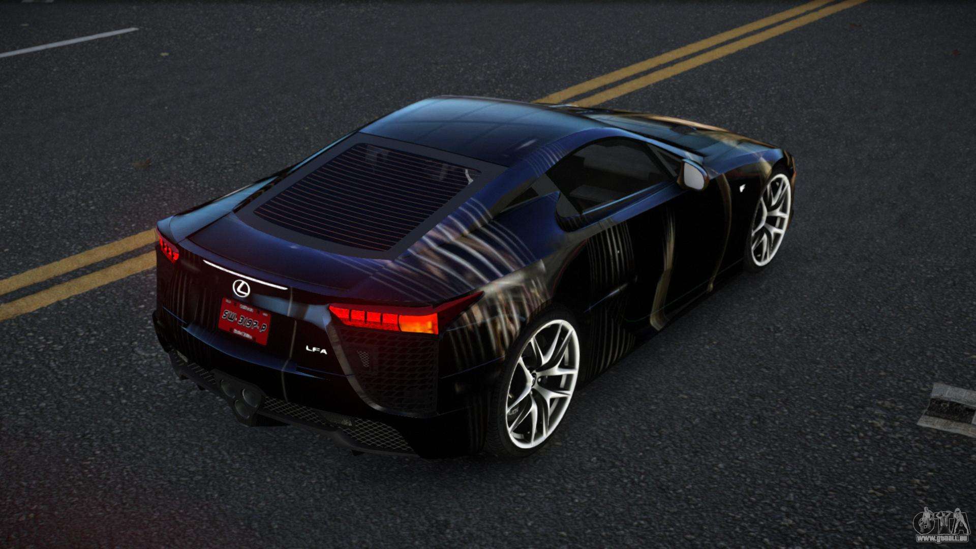 Vous pouvez apprécier tout le charme de la voiture en téléchargeant le mod Lexus LFA Jenah S12 pour GTA 4 en cliquant sur les liens ci-dessous. Le mod s’installe automatiquement en deux clics, par défaut il remplace la Banshee, ou choisit n’importe quel autre véhicule du jeu que vous souhaitez transformer.