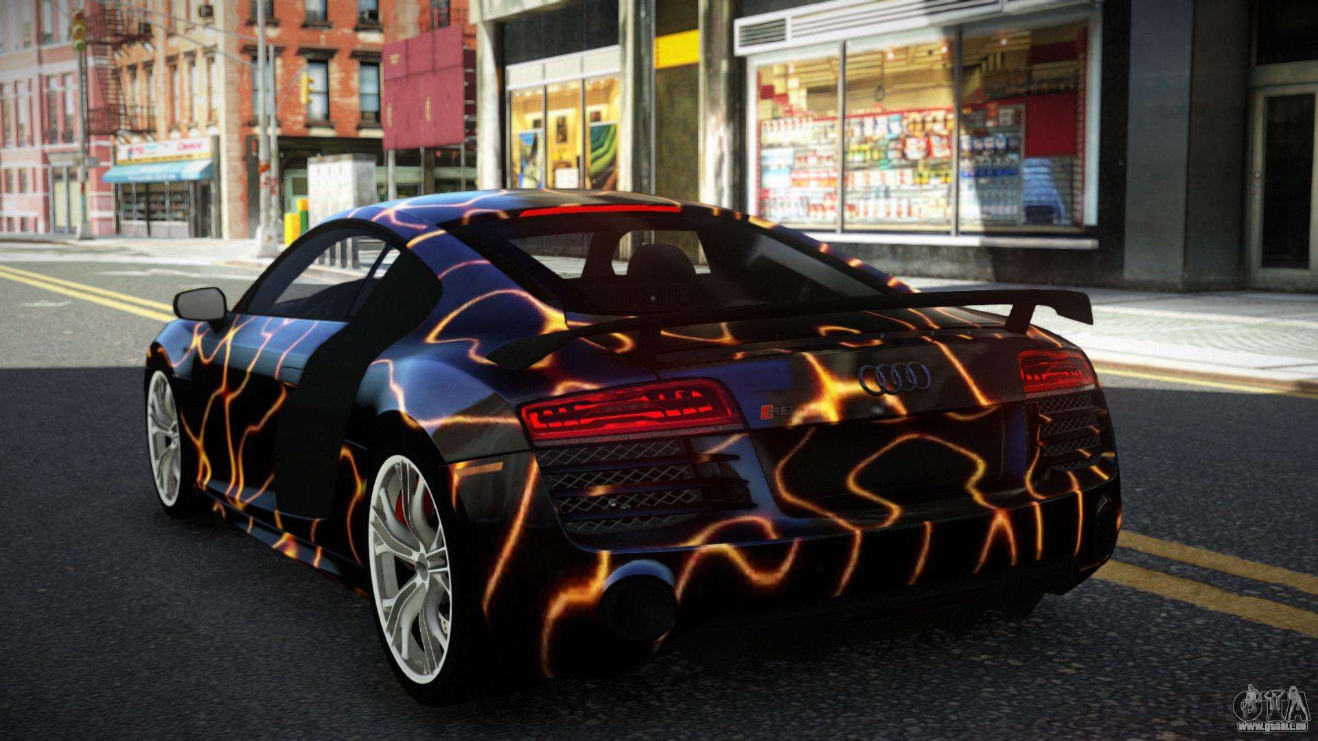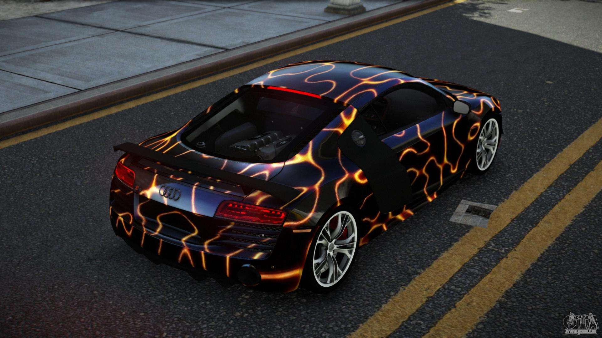 C’est ce qu’il te faut ! Suivez les liens ci-dessous pour télécharger gratuitement le mod Audi R8 Chtoel S8 pour GTA 4. Le réglage par défaut est de remplacer la Banshee, ou avec l’aide du même installateur, vous pouvez la remplacer par n’importe quel transport standard.