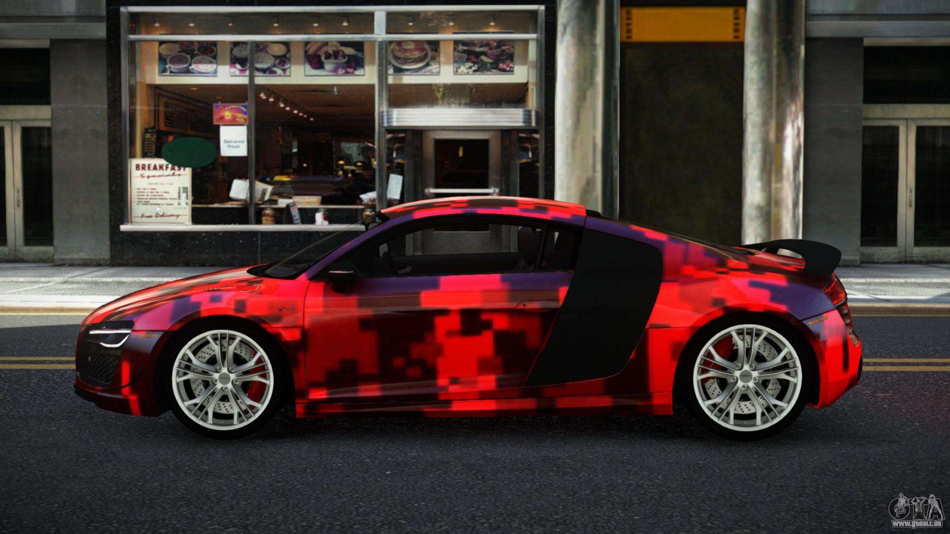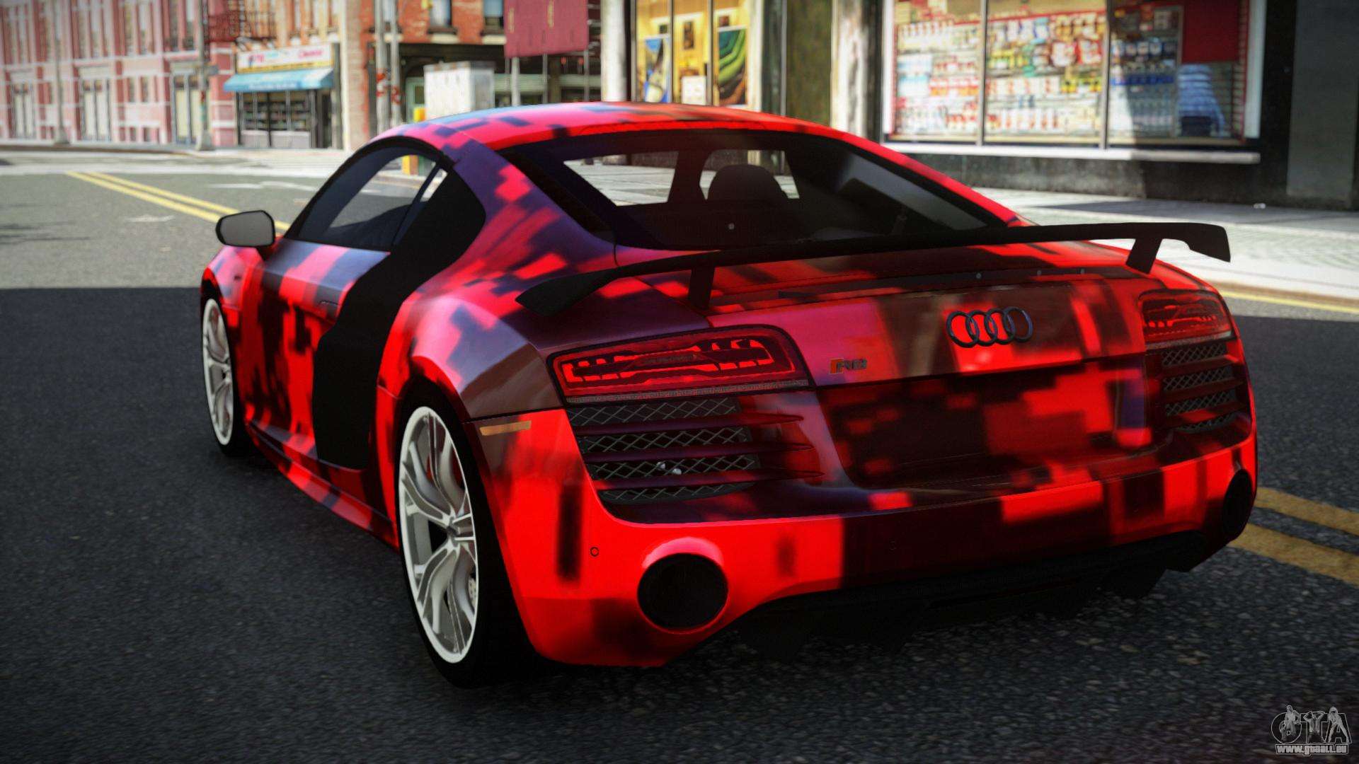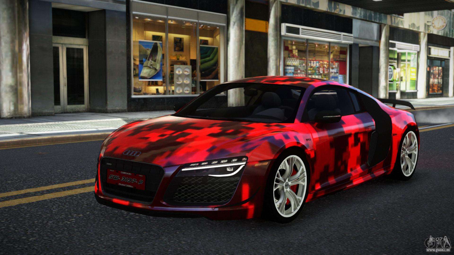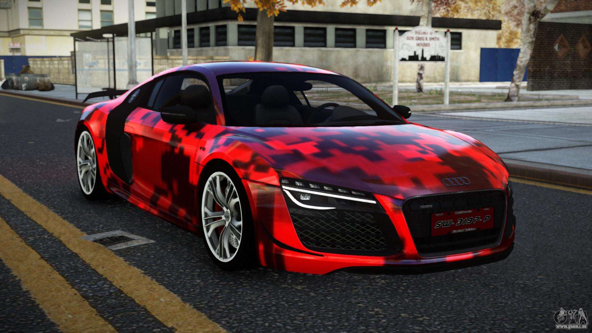 Pour télécharger gratuitement le mod Audi R8 Chtoel S9 pour GTA 4, il suffit de cliquer sur les liens en bas de la page. Notre installateur automatisé vous aidera à installer le mod de remplacement de Banshee en deux clics, ou vous pouvez choisir n’importe quel autre véhicule standard dans le jeu.