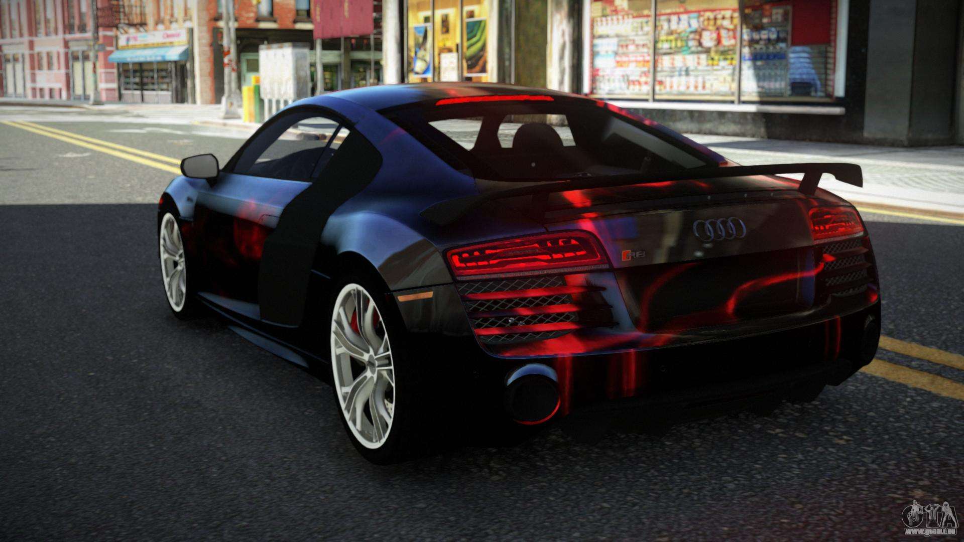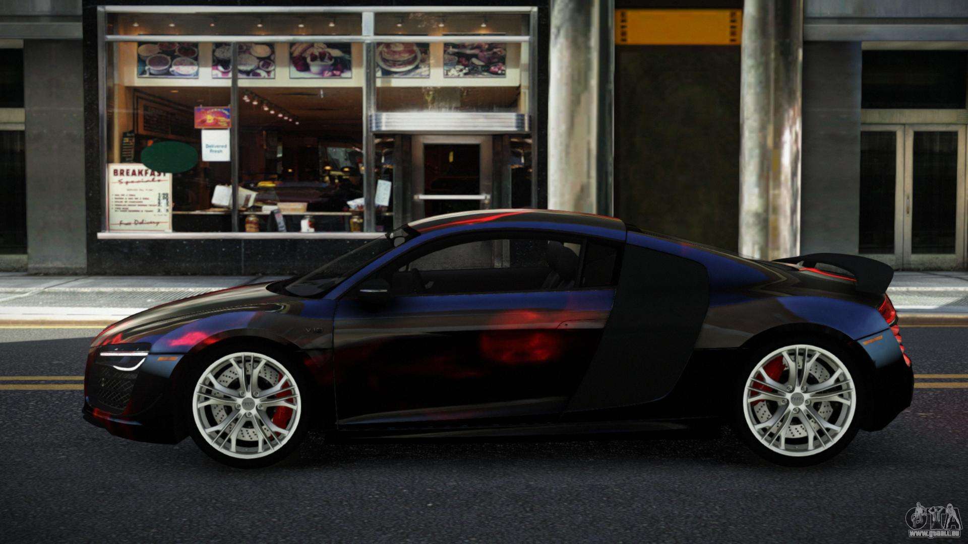 En utilisant les liens ci-dessous, vous pouvez télécharger gratuitement le mod Audi R8 Chtoel S10 pour GTA 4. Par défaut, le mod remplace automatiquement la voiture par une Banshee. Avec l’aide de notre installateur, vous pouvez remplacer la voiture par un autre véhicule standard.