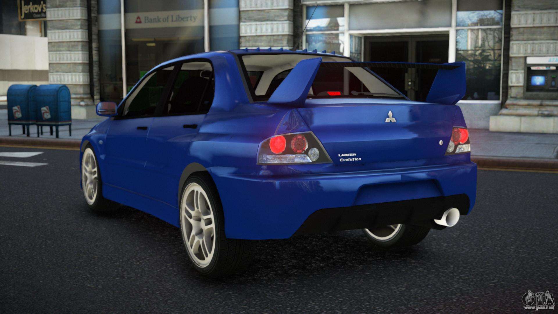 Pour télécharger gratuitement le mod Mitsubishi Lancer Evolution IX Pulepum pour GTA 4, il vous suffit de cliquer sur les liens en bas de la page. Notre installateur automatisé vous aidera à installer le mod de remplacement Sultan en deux clics, ou vous pouvez choisir n’importe quel autre véhicule standard dans le jeu.