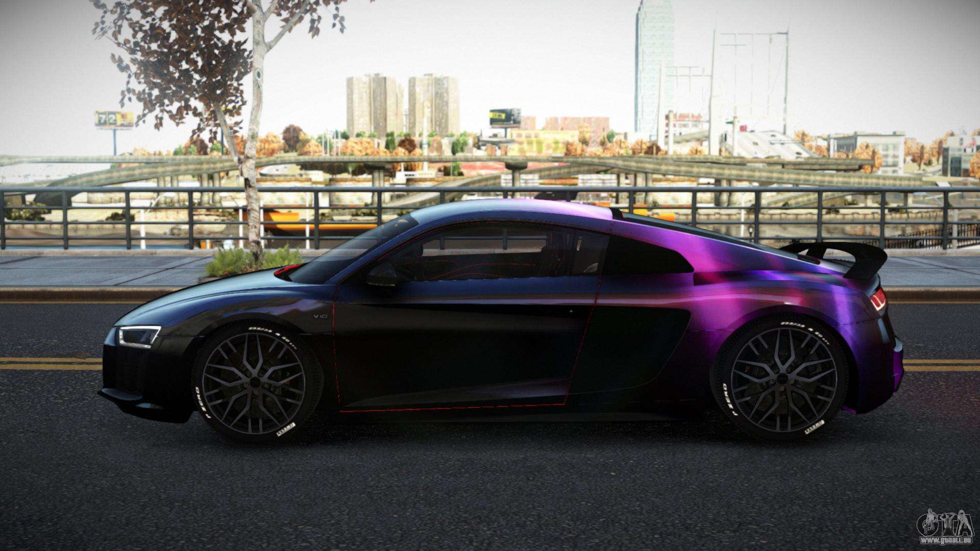 Vous pouvez apprécier tout le charme de la voiture en téléchargeant le mod Audi R8 Sokyvia S2 pour GTA 4 en cliquant sur les liens ci-dessous. Le mod s’installe automatiquement en deux clics, par défaut il remplace la Banshee, ou choisit n’importe quel autre véhicule du jeu que vous souhaitez transformer.