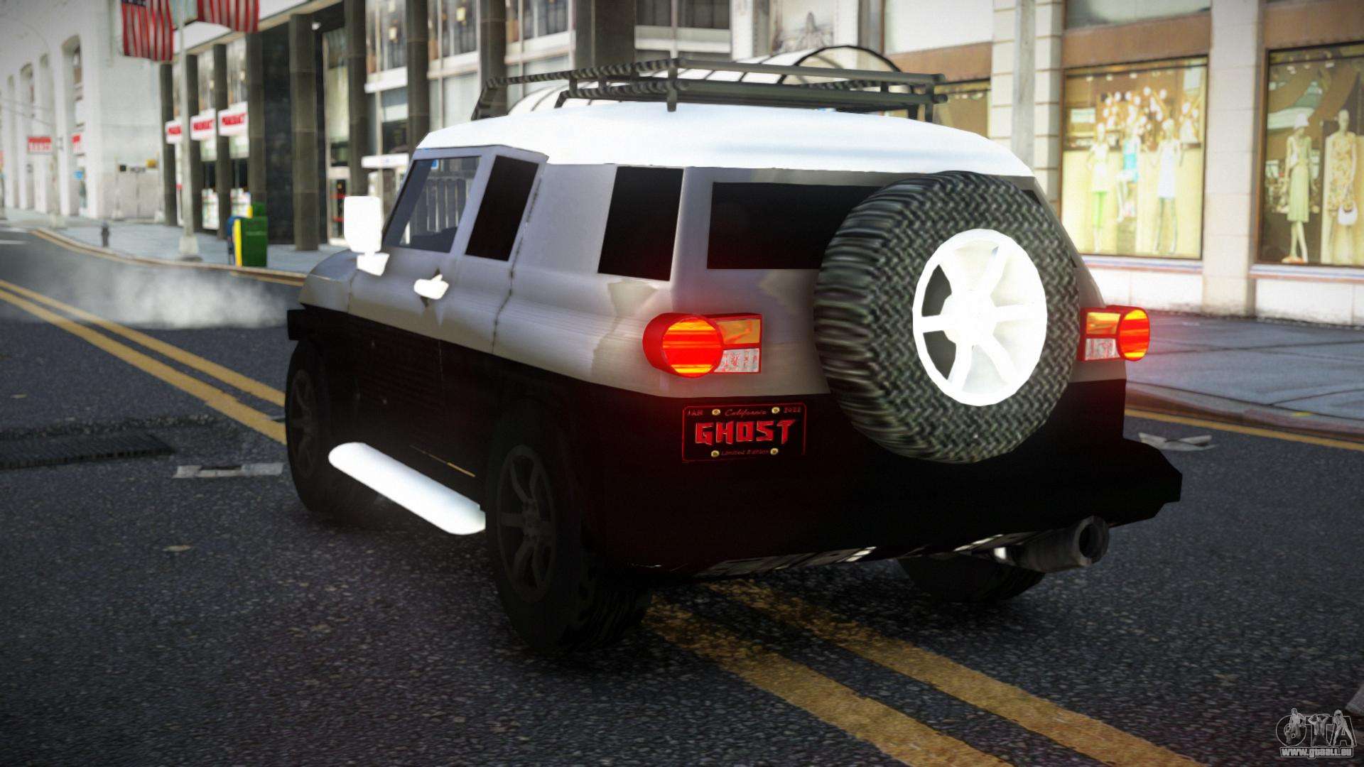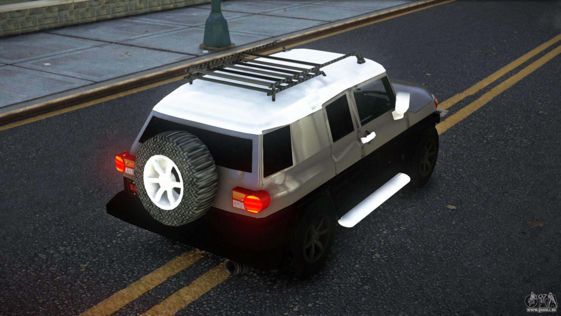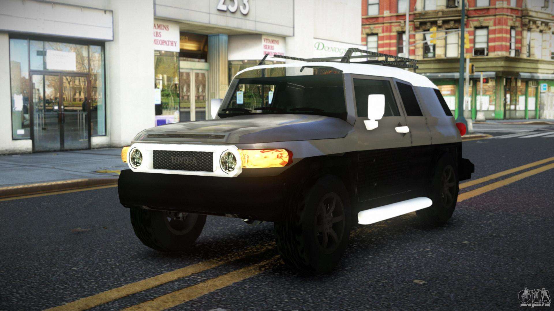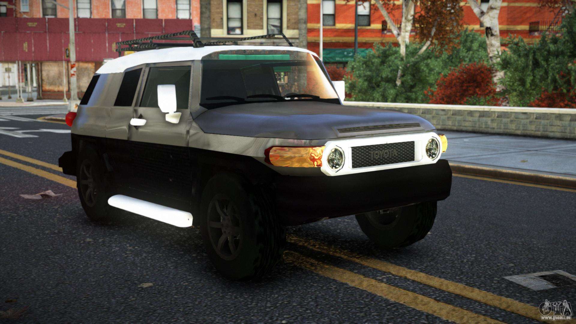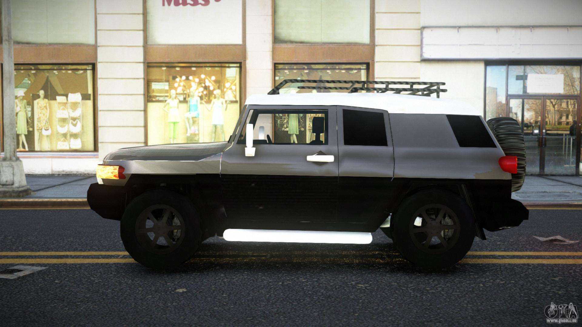 Pour télécharger gratuitement le mod Toyota FJ Cruiser Zaljoqo pour GTA 4, suivez les liens ci-dessous. L’installateur automatique remplace Landstalker par défaut, mais vous pouvez choisir absolument n’importe quel véhicule standard du jeu que vous souhaitez remplacer par un nouveau modèle.