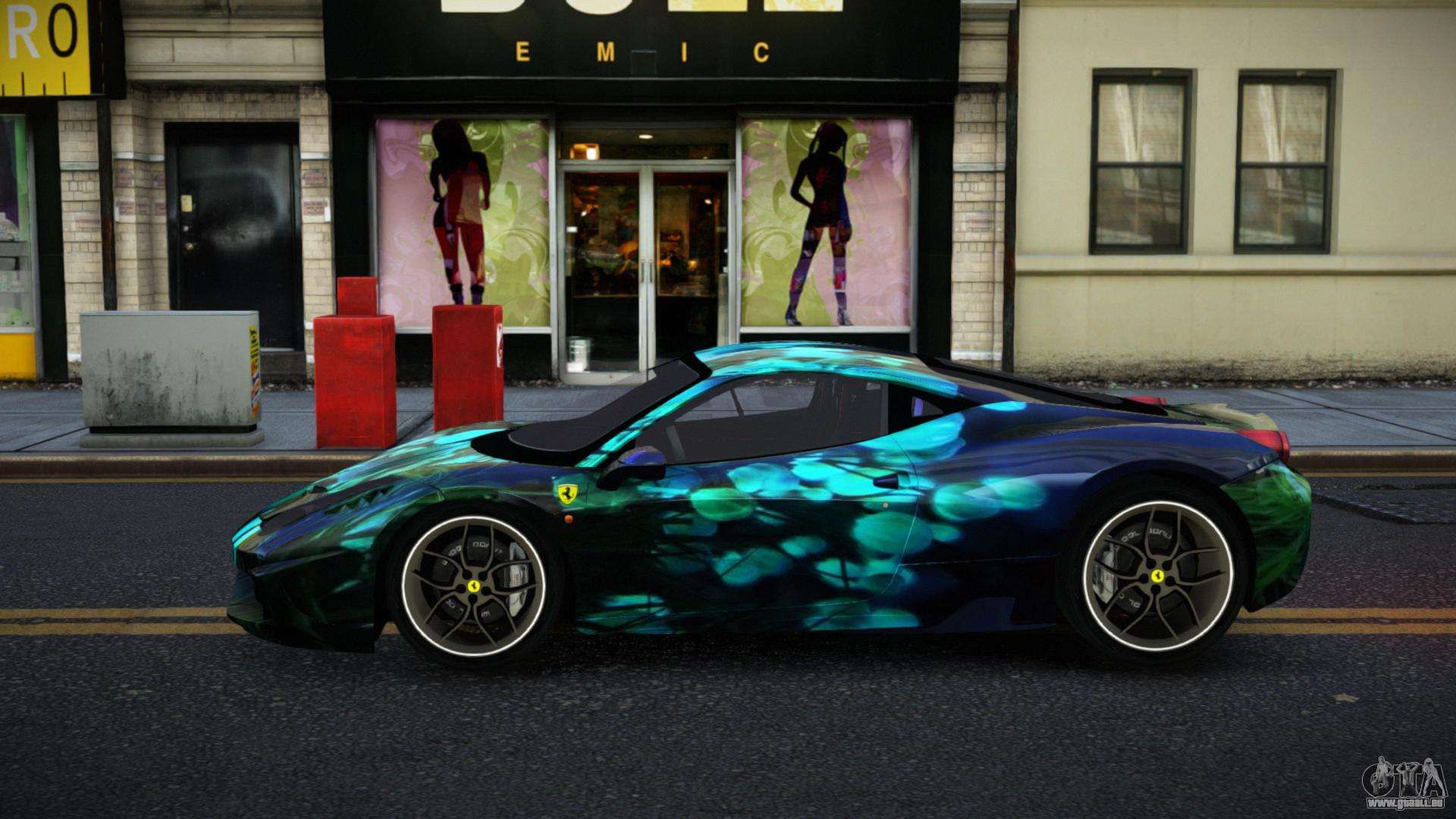 Vous pouvez télécharger le mod Ferrari 458 Ahemiry S6 pour GTA 4 via les liens ci-dessous. Par défaut, le mod s’installe en deux clics pour remplacer la Banshee. Grâce à notre installateur avec installation automatique, vous pouvez remplacer n’importe quel autre véhicule standard dans le jeu.