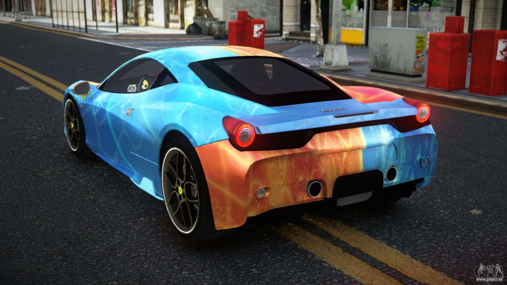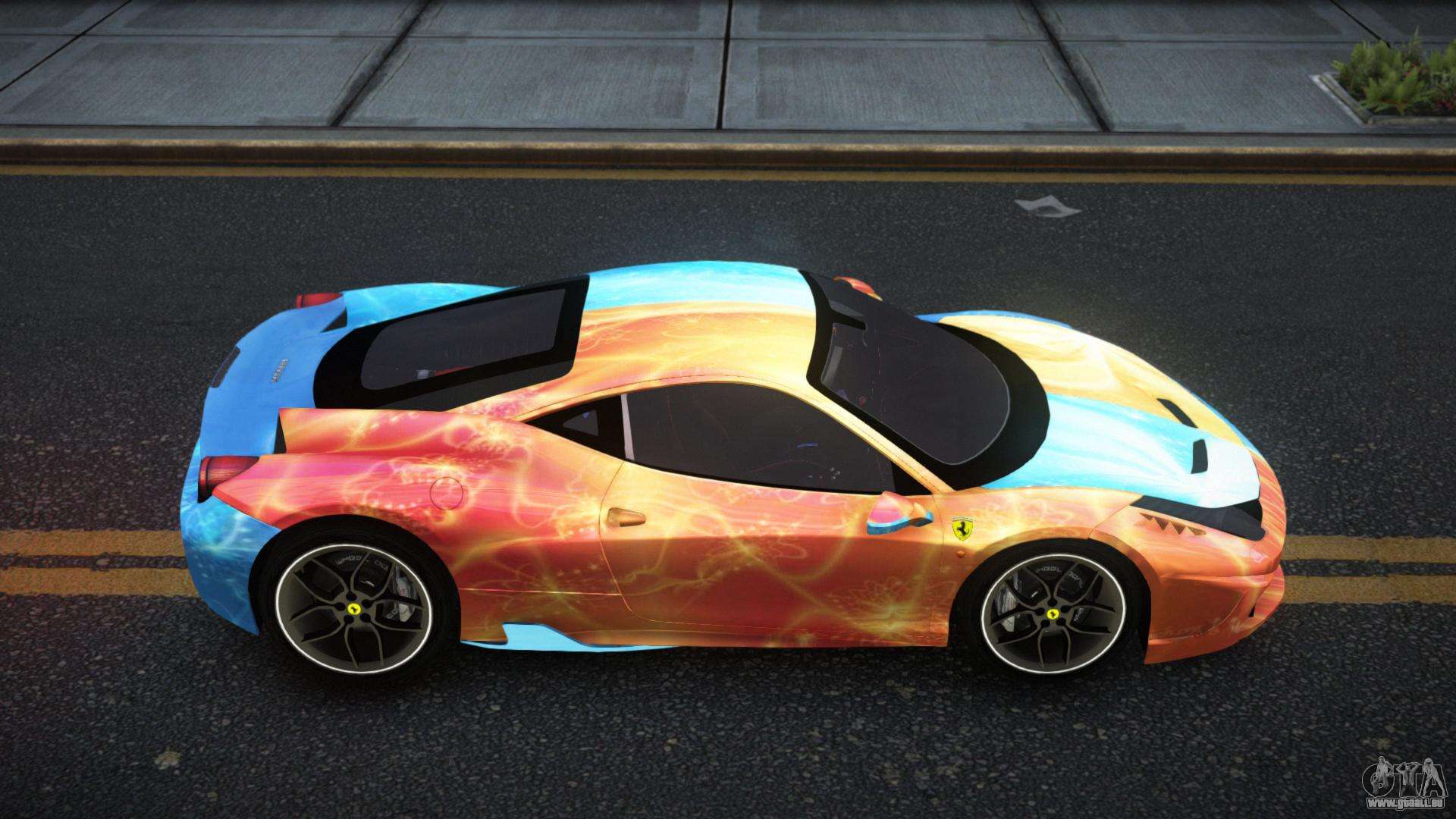 Pour télécharger gratuitement le mod Ferrari 458 Ahemiry S11 pour GTA 4, suivez les liens ci-dessous. L’installateur automatique remplace la Banshee par défaut, mais vous pouvez choisir absolument n’importe quel véhicule standard du jeu que vous souhaitez remplacer par un nouveau modèle.
