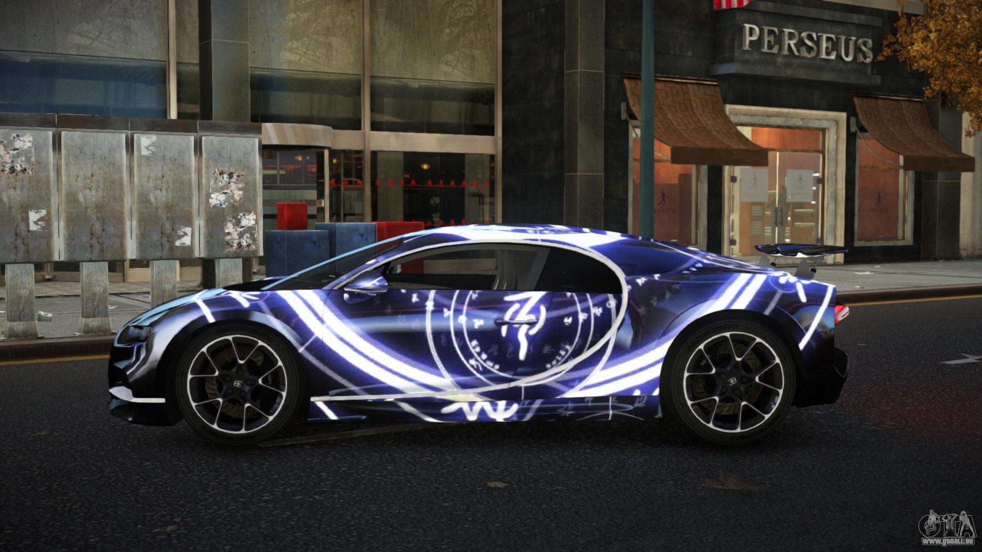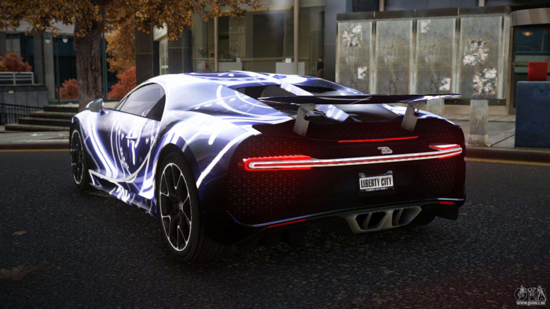Nous vous présentons le mod de la voiture Bugatti Chiron Reykony S14 pour GTA 4, qui vous permet de diversifier la circulation urbaine dans les rues de Liberty City.