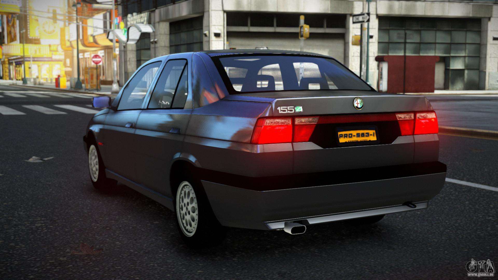 Vous pouvez télécharger le mod Alfa Romeo 155 Gibalusin pour GTA 4 via les liens ci-dessous. Par défaut, le mod s’installe en deux clics pour remplacer l’Admiral. Grâce à notre installateur avec installation automatique, vous pouvez remplacer n’importe quel autre véhicule standard dans le jeu.