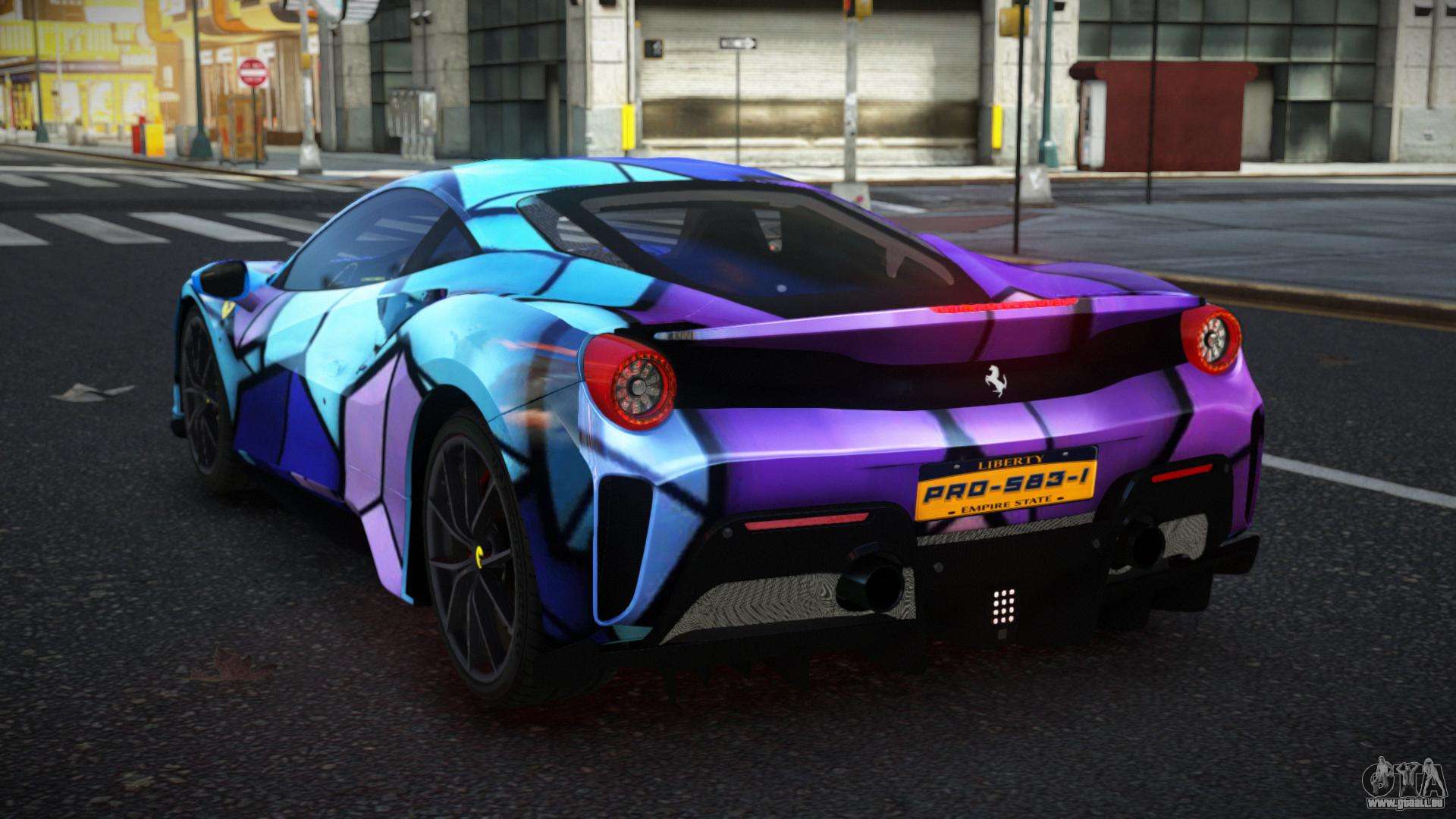 Pour télécharger gratuitement le mod Ferrari 488 Viersa S7 pour GTA 4, il vous suffit de cliquer sur les liens en bas de la page. Notre installateur automatisé vous aidera à installer le mod de remplacement Feltzer en deux clics, ou vous pouvez choisir n’importe quel autre véhicule standard dans le jeu.