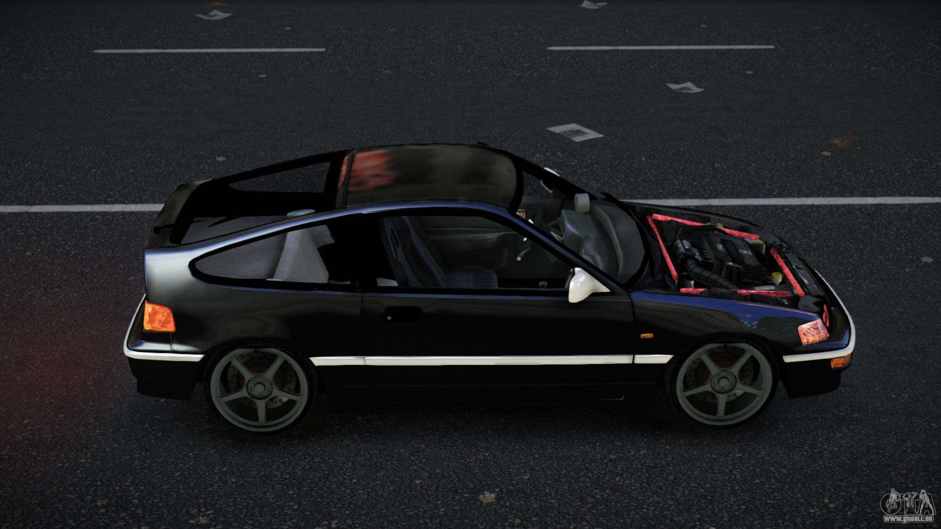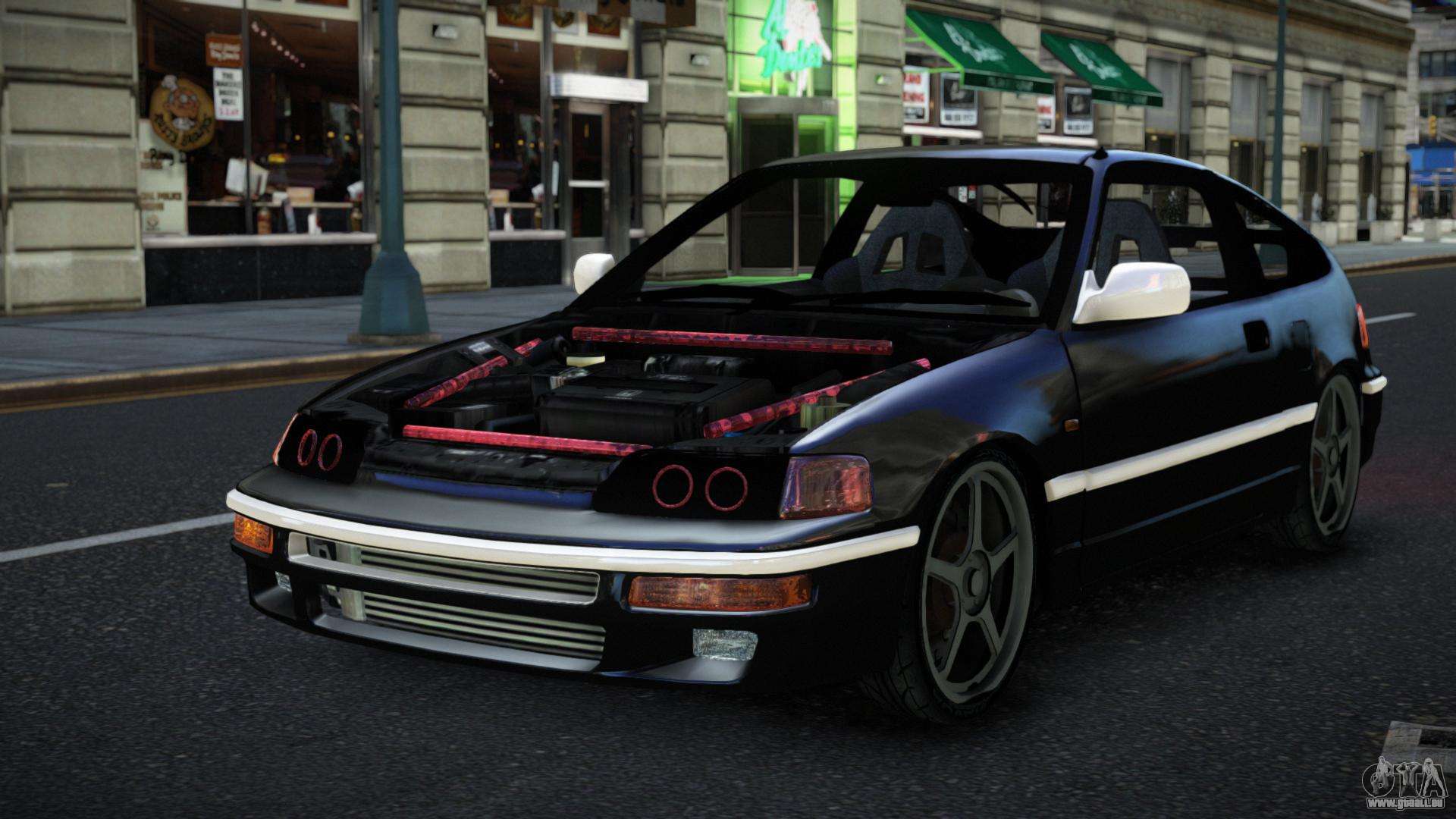 Le mod Honda CRX Ruji pour GTA 4 peut être téléchargé ci-dessous via les liens. La modification est installée automatiquement par défaut pour remplacer le Blista Compact, et avec l’aide de notre installateur, vous pouvez la remplacer par n’importe quel transport de jeu standard.