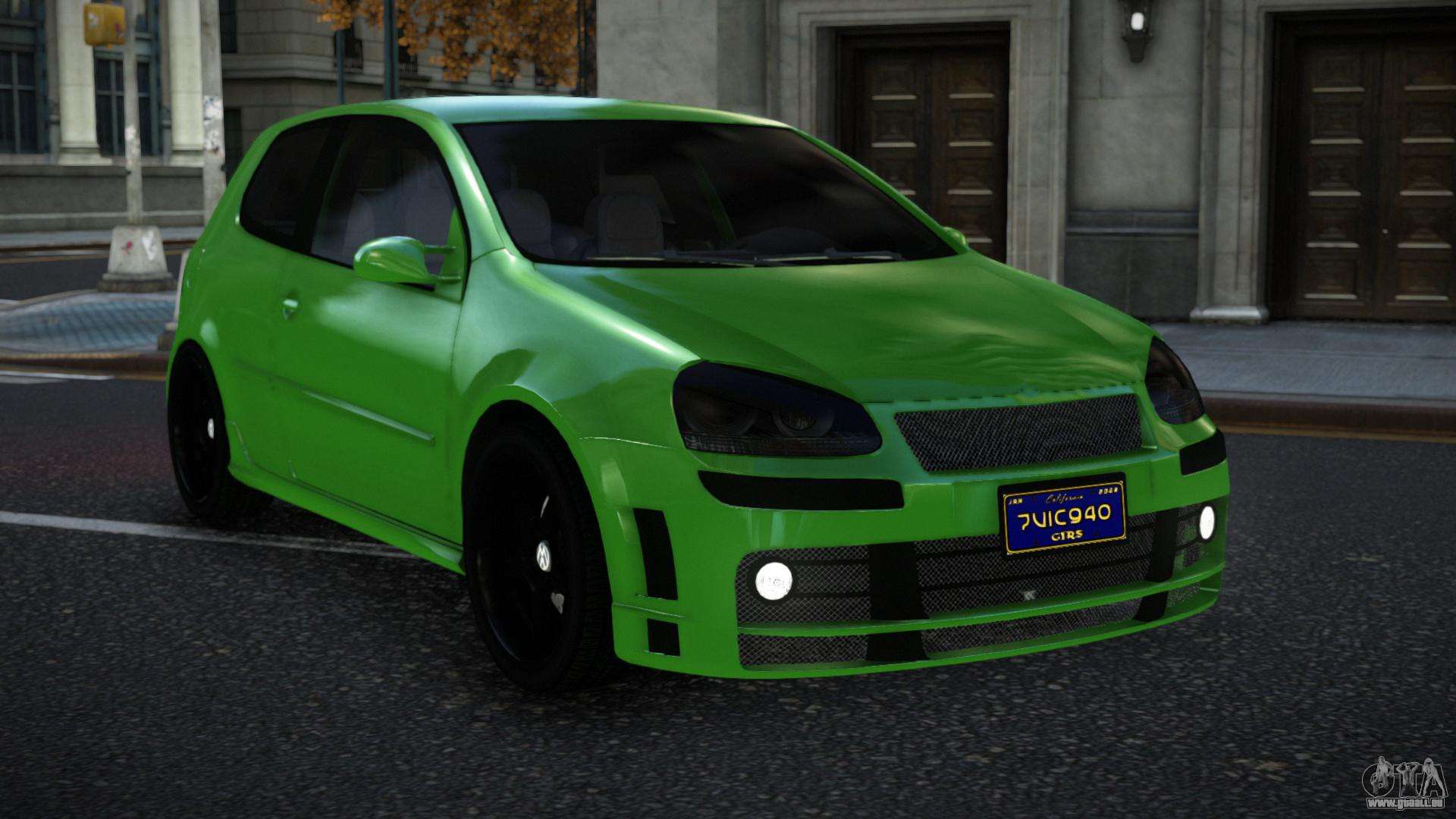 Pour télécharger gratuitement le mod Volkswagen Golf Nojetucas pour GTA 4, suivez les liens ci-dessous. L’installateur automatique remplace par défaut Blista Compact, mais vous pouvez choisir absolument n’importe quel véhicule standard du jeu que vous souhaitez remplacer par un nouveau modèle.