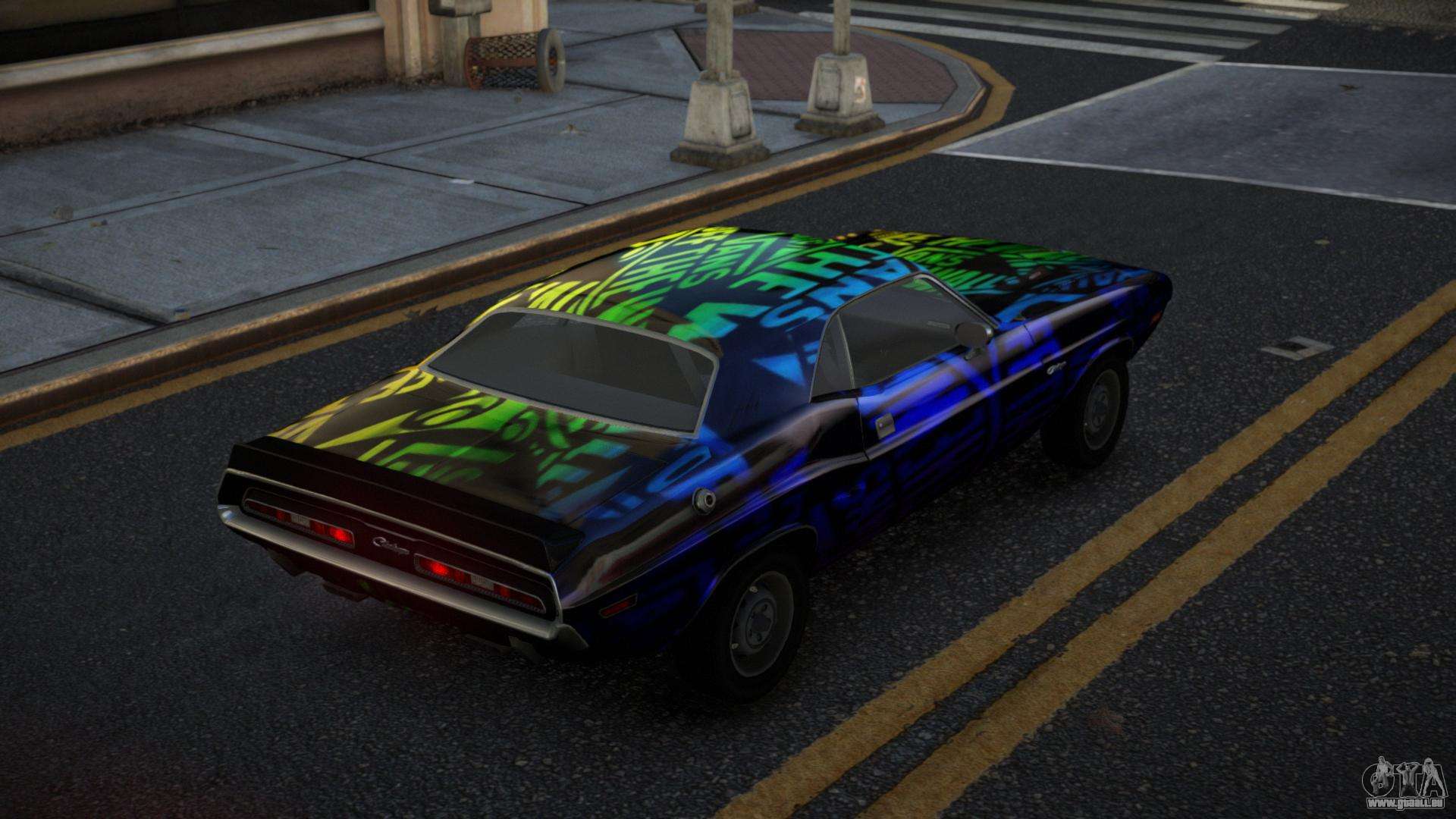 Vous pouvez apprécier tout le charme de la voiture en téléchargeant le mod Dodge Challenger Anahzie S12 pour GTA 4 en cliquant sur les liens ci-dessous. Le mod s’installe automatiquement en deux clics, par défaut il remplace la Banshee, ou choisit n’importe quel autre véhicule du jeu que vous souhaitez transformer.