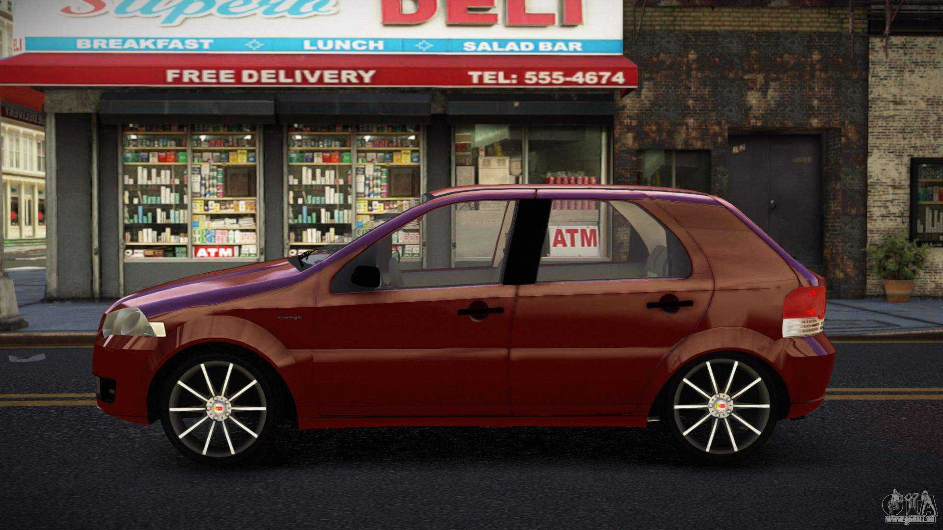 Le mod Fiat Palio Bicaseqef pour GTA 4 peut être téléchargé ci-dessous via les liens. La modification est installée automatiquement par défaut pour remplacer le Blista Compact, et avec l’aide de notre installateur, vous pouvez la remplacer par n’importe quel transport de jeu standard.