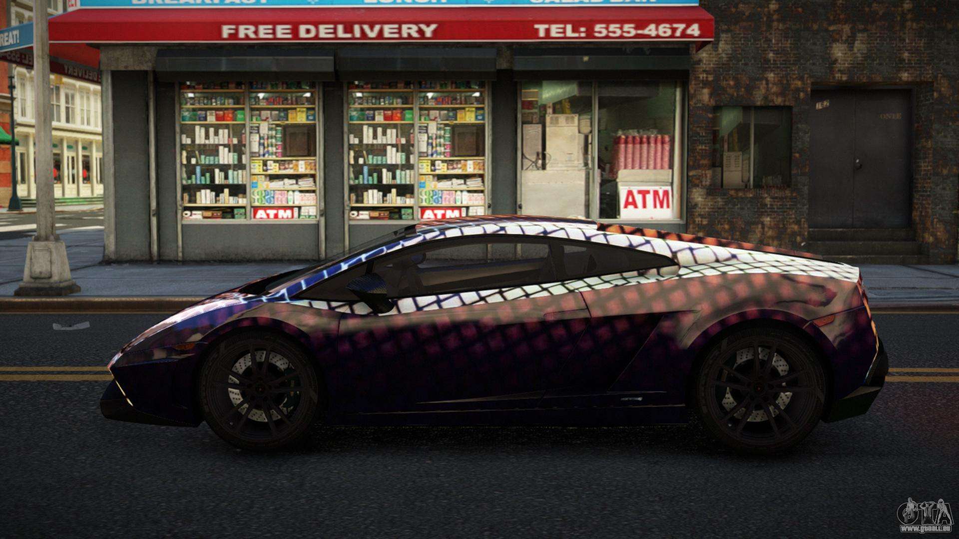 Pour télécharger gratuitement le mod Lamborghini Gallardo Bryjenly S11 pour GTA 4, suivez les liens ci-dessous. L’installateur automatique remplace la Banshee par défaut, mais vous pouvez choisir absolument n’importe quel véhicule standard du jeu que vous souhaitez remplacer par un nouveau modèle.