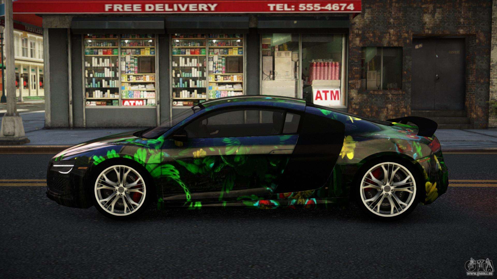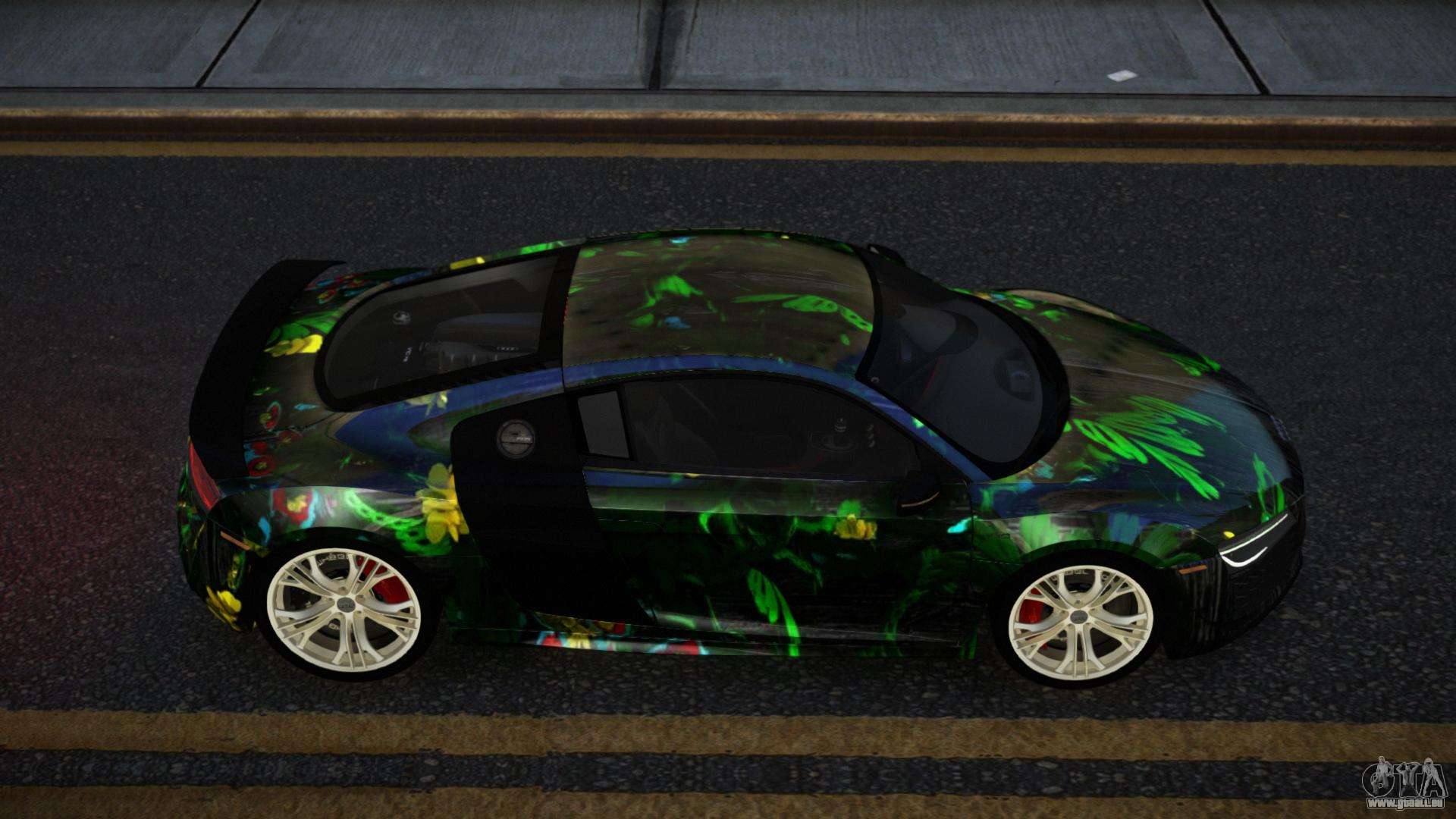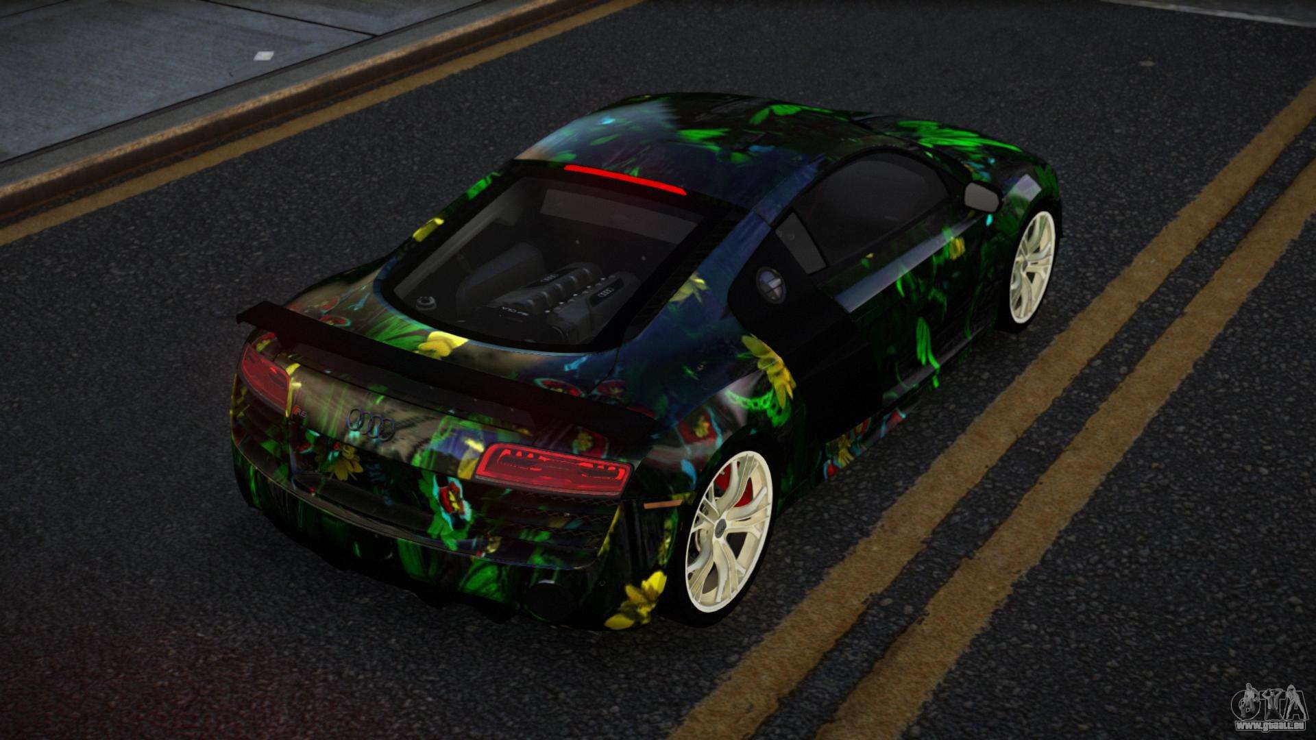 Vous pouvez télécharger gratuitement le mod Audi R8 Lychfer S5 pour GTA 4 en cliquant sur le lien ci-dessous. Installation automatique, par défaut pour remplacer la Banshee, ou avec l’aide de l’installateur, vous pouvez choisir n’importe quelle autre voiture standard du jeu.