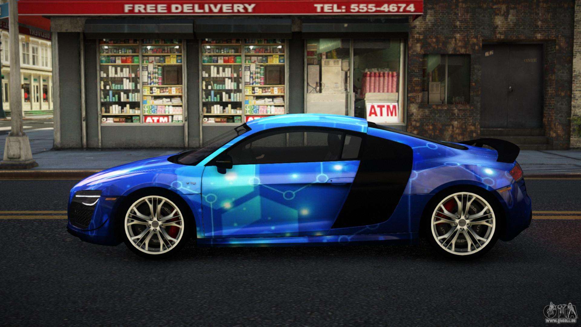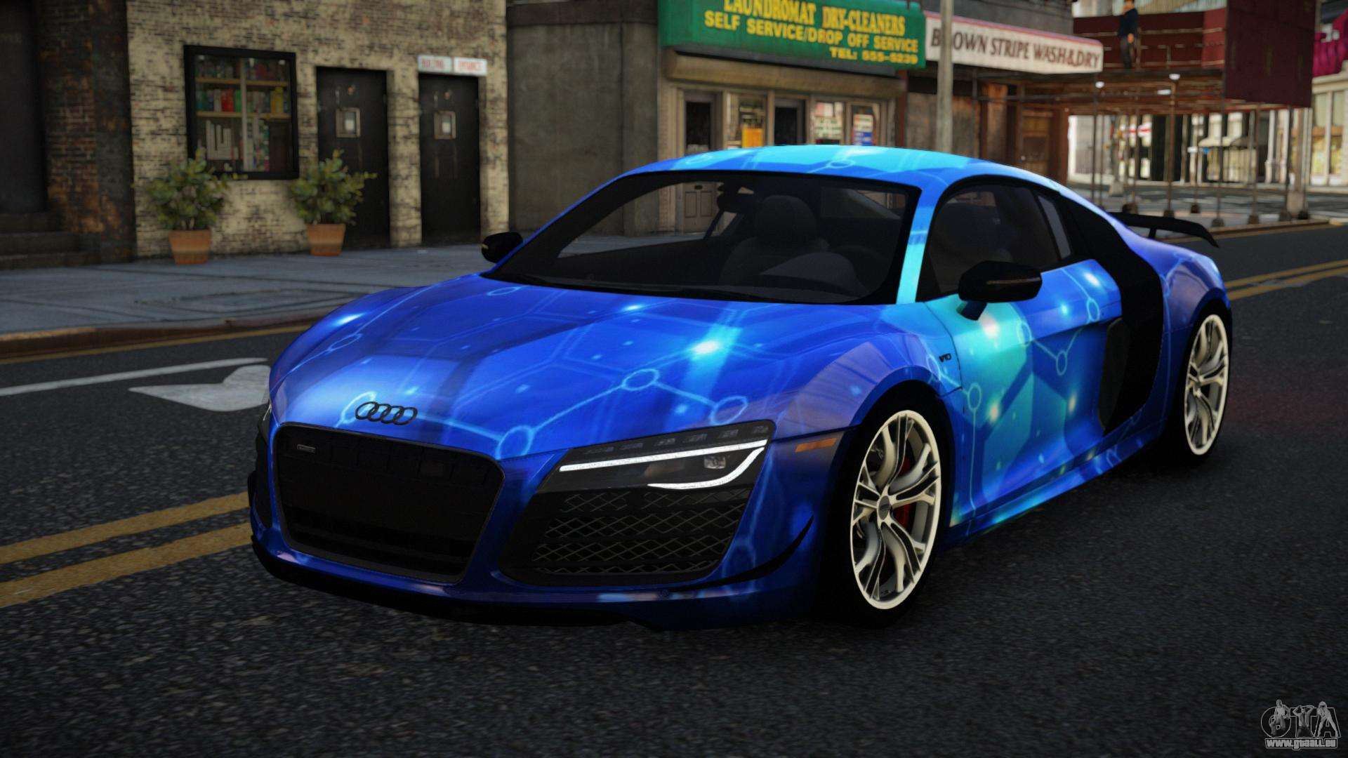 En utilisant les liens ci-dessous, vous pouvez télécharger gratuitement le mod Audi R8 Lychfer S10 pour GTA 4. Par défaut, le mod remplace automatiquement la voiture par une Banshee. Avec l’aide de notre installateur, vous pouvez remplacer la voiture par un autre véhicule standard.