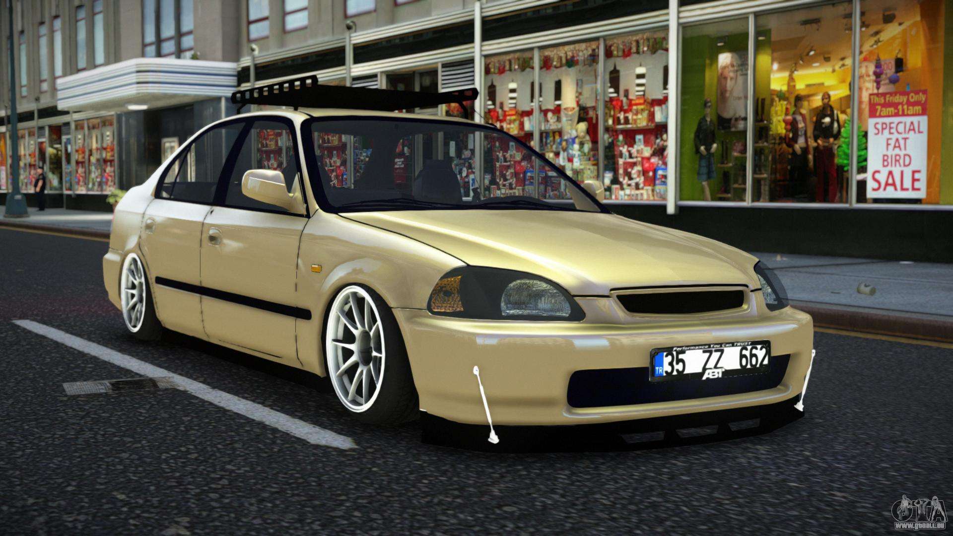 Pour télécharger gratuitement le mod Honda Civic Zafuti pour GTA 4, il vous suffit de cliquer sur les liens en bas de la page. Notre installateur automatisé vous aidera à installer le mod de remplacement de l’Amiral en deux clics, ou vous pouvez choisir n’importe quel autre véhicule standard dans le jeu.