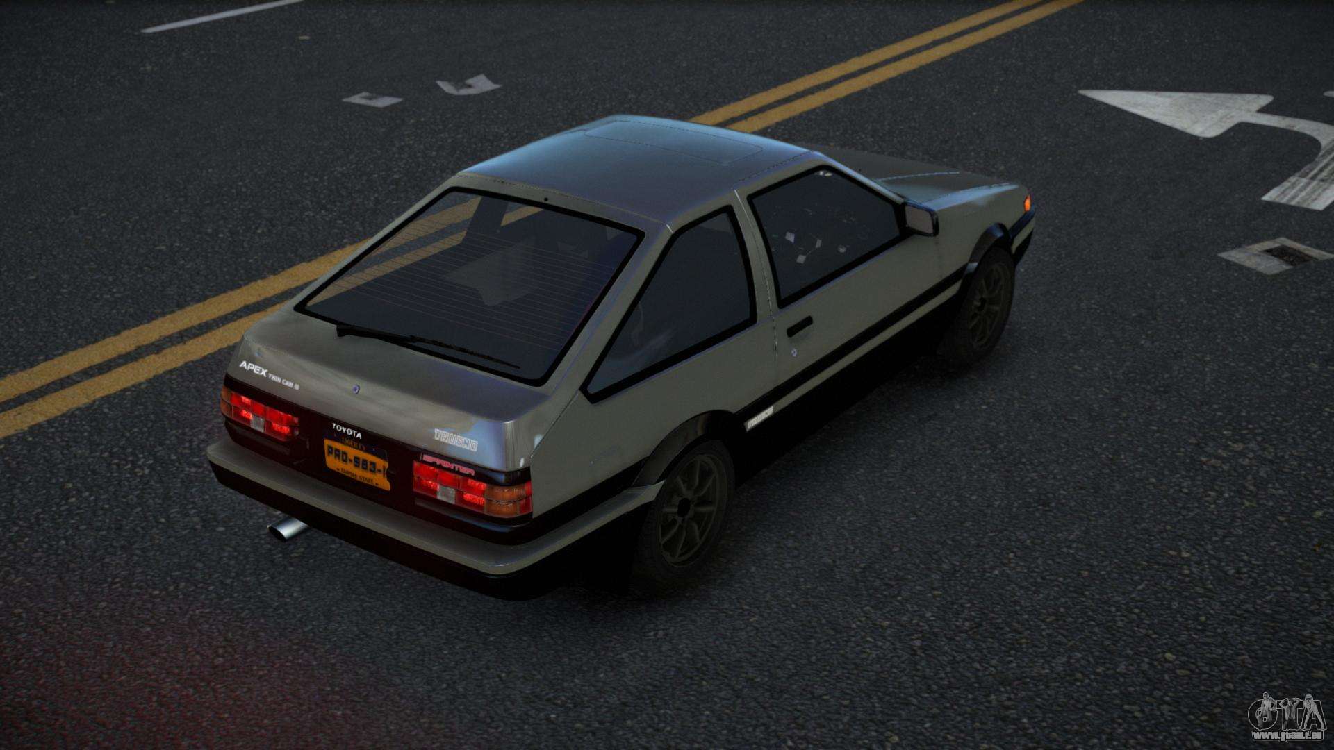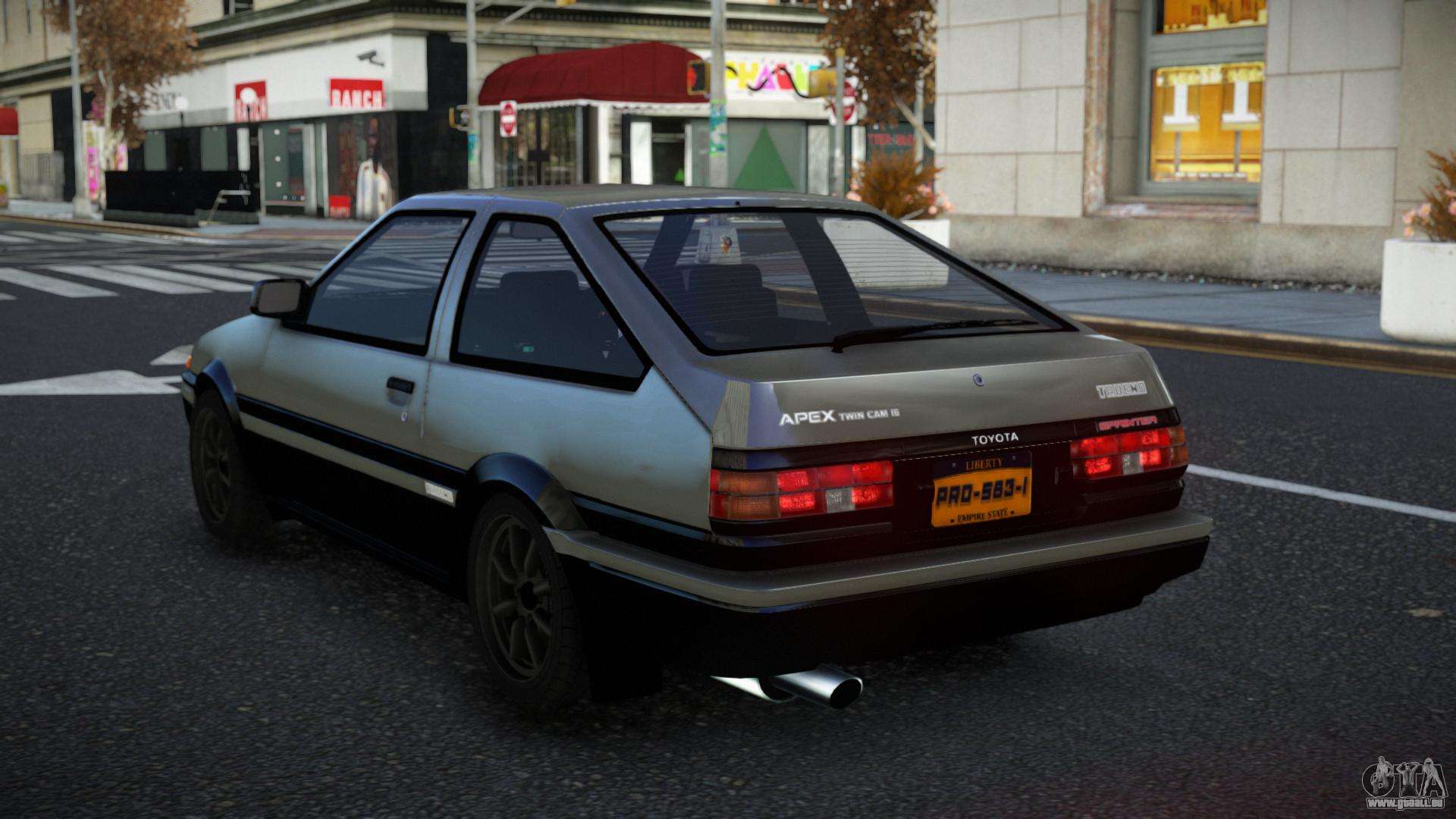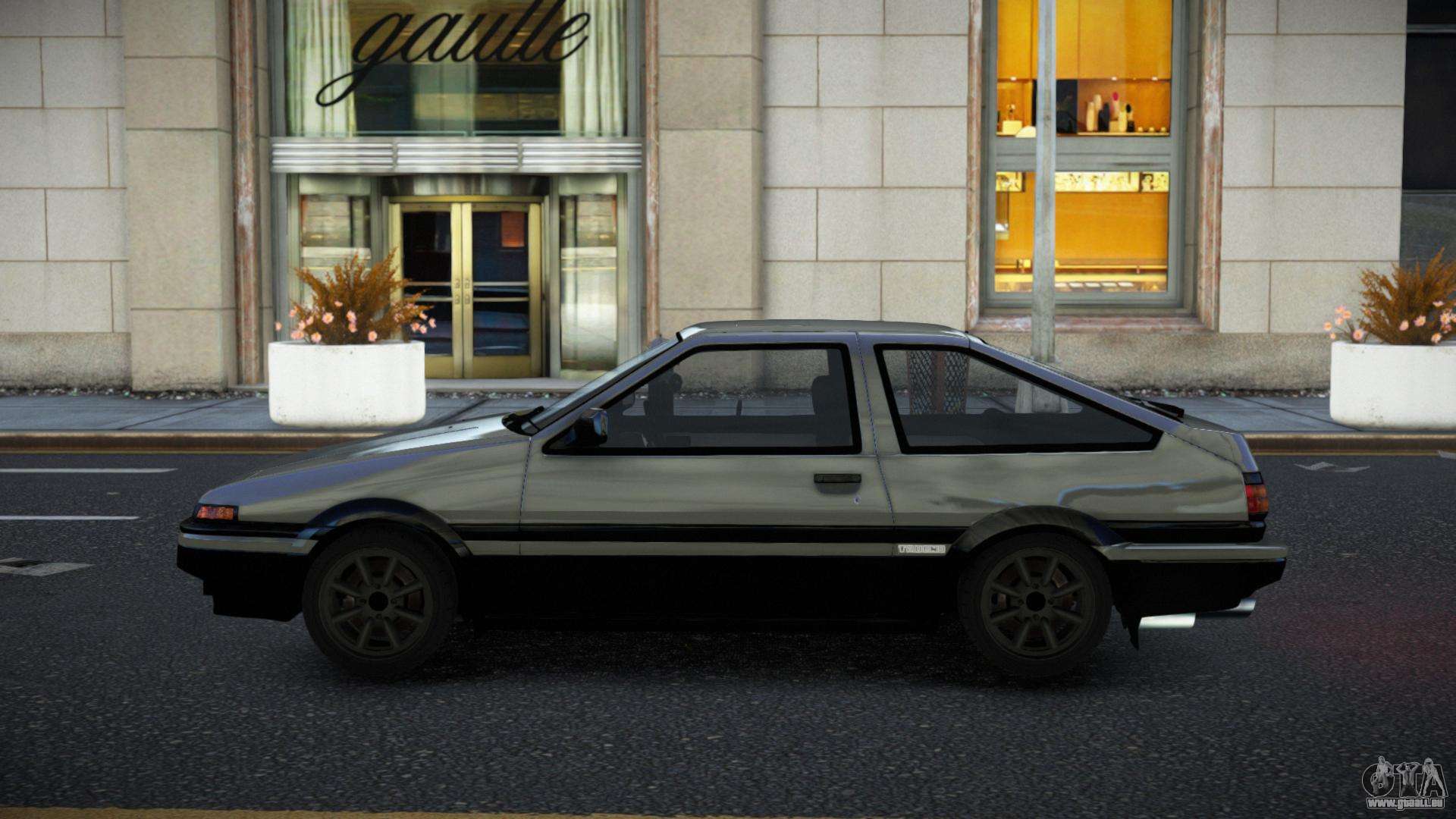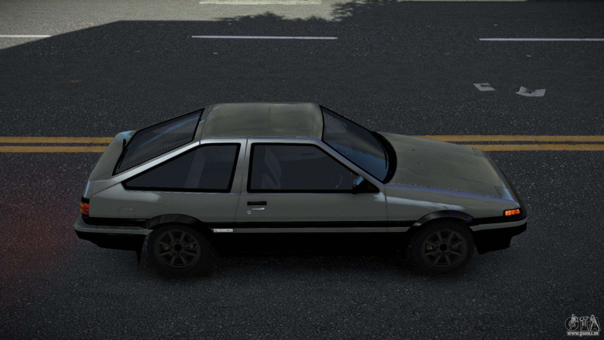 Pour télécharger gratuitement le mod Toyota AE86 Lalyaxu pour GTA 4, il suffit de cliquer sur les liens en bas de la page. Notre installateur automatisé vous aidera à installer le mod de remplacement Futo en deux clics, ou vous pouvez choisir n’importe quel autre véhicule standard du jeu.