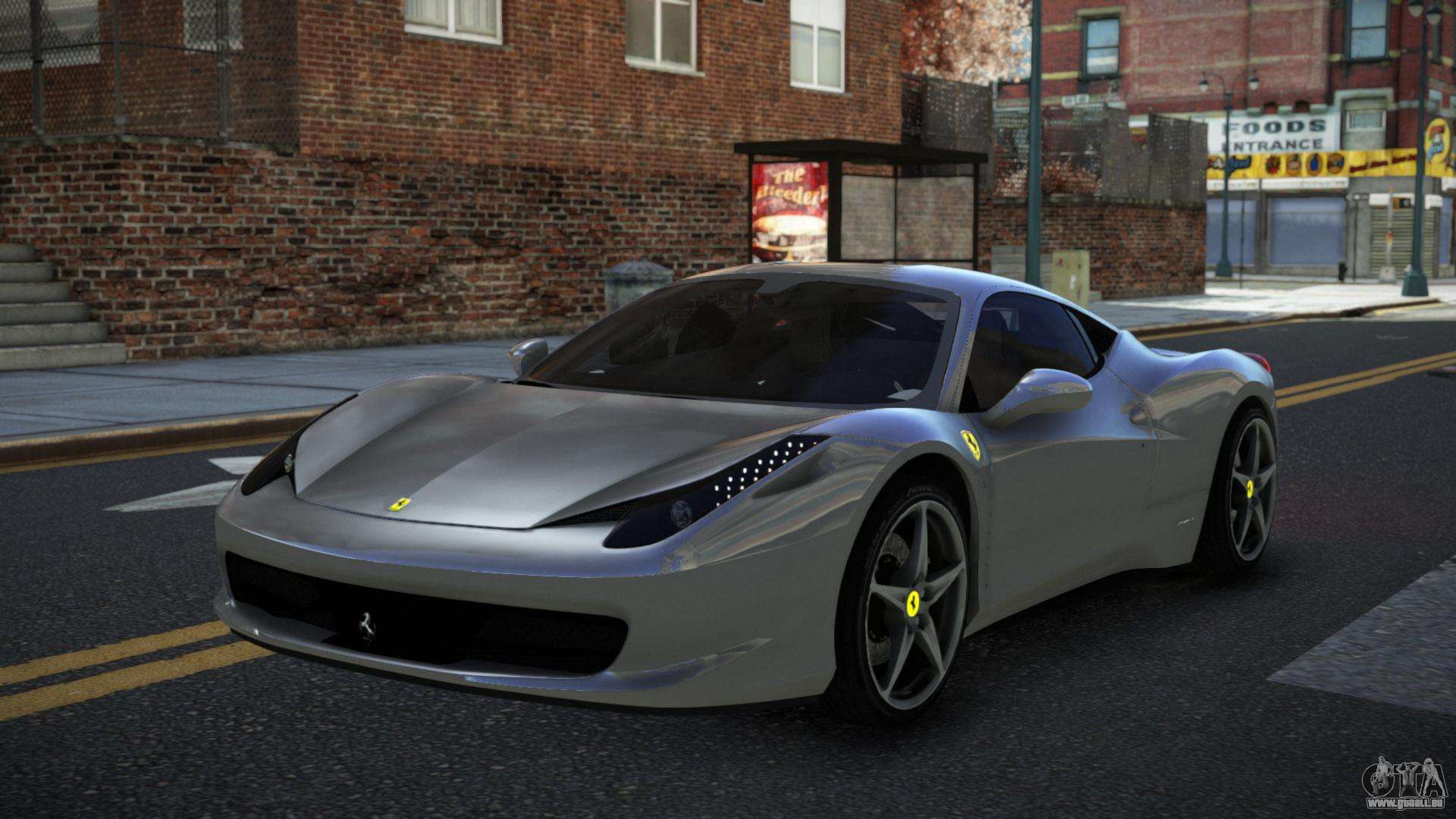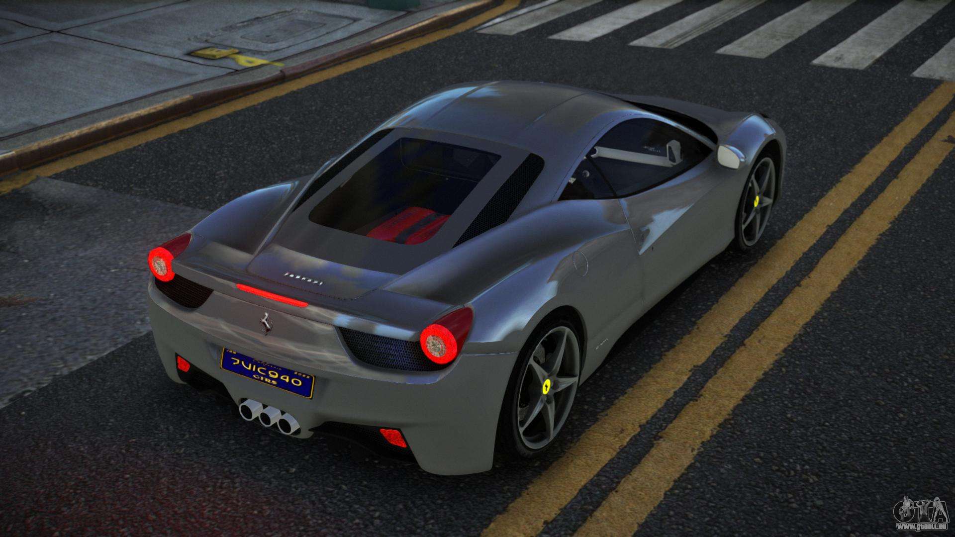 Le mod Ferrari 458 Rocweso pour GTA 4 peut être téléchargé ci-dessous via les liens. Le mod est installé automatiquement par défaut pour remplacer le Turismo, et vous pouvez aussi utiliser notre installateur pour le remplacer par n’importe quel véhicule de jeu standard.