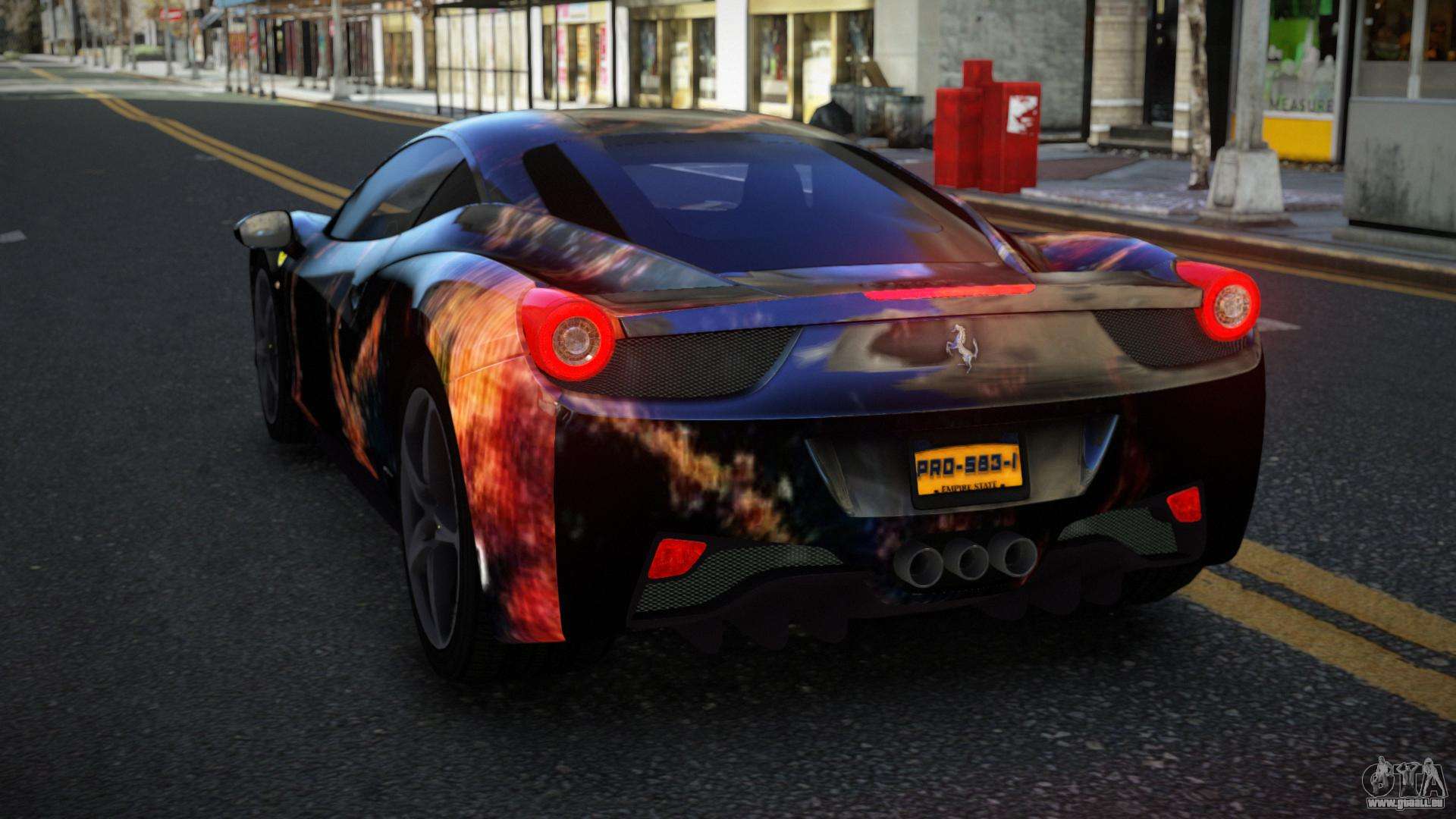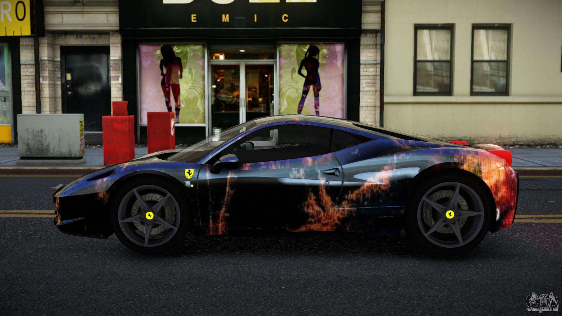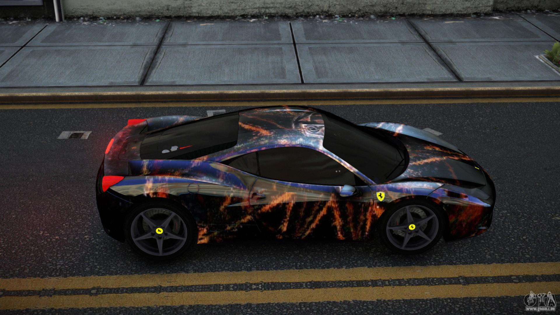 Vous pouvez télécharger gratuitement le mod Ferrari 458 Gably S13 pour GTA 4 en cliquant sur le lien ci-dessous. Installation automatique, par défaut pour remplacer Feltzer, ou avec l’aide de l’installateur, vous pouvez sélectionner n’importe quelle autre voiture standard du jeu.