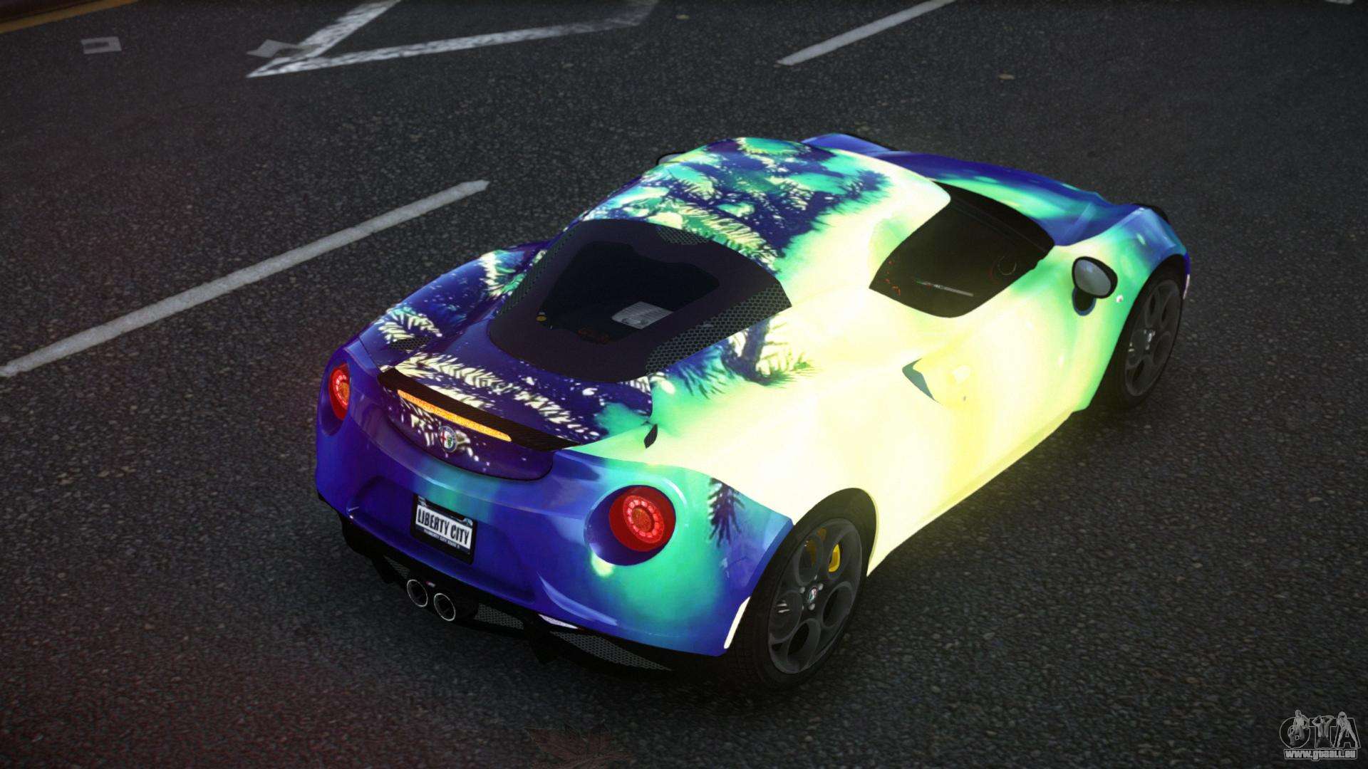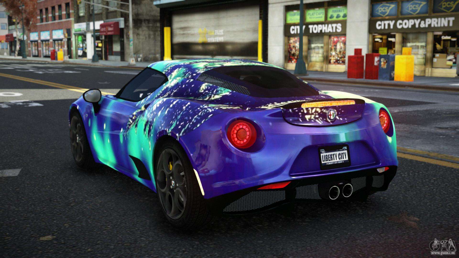 Pour télécharger gratuitement le mod Alfa Romeo 4C Lanra S9 pour GTA 4, il suffit de cliquer sur les liens en bas de la page. Notre installateur automatisé vous aidera à installer le mod de remplacement de Banshee en deux clics, ou vous pouvez choisir n’importe quel autre véhicule standard dans le jeu.